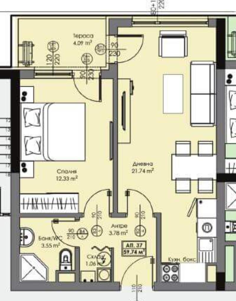 Представляем вашему вниманию современную двухкомнатную квартиру в новом жилом комплексе, расположенном в районе Азимут (квартал Хоризонт) — одном из самых динамично развивающихся и перспективных районов Бургаса. Локация отличается новой инфраструктурой, удобным транспортным