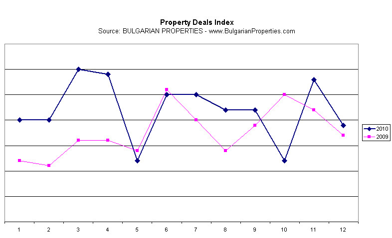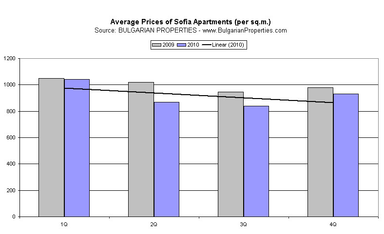 The property market in the capital Sofia was the most dynamic in the country in 2010. According to BULGARIAN PROPERTIES data the average concluded deals as per quarters in 2010 and 2009 are as follows: