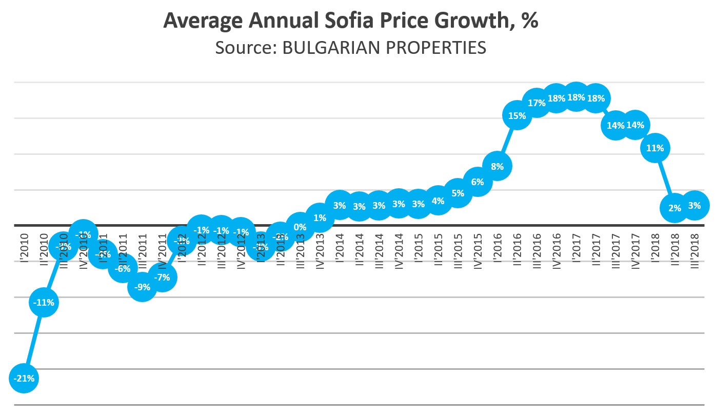On the graphs, you can see the annual growth of prices by quarters. The annual price increase in the 3rd quarter is 3% and for the first 9 months, the annual growth in prices in Sofia is 5% compared to the same period last year.