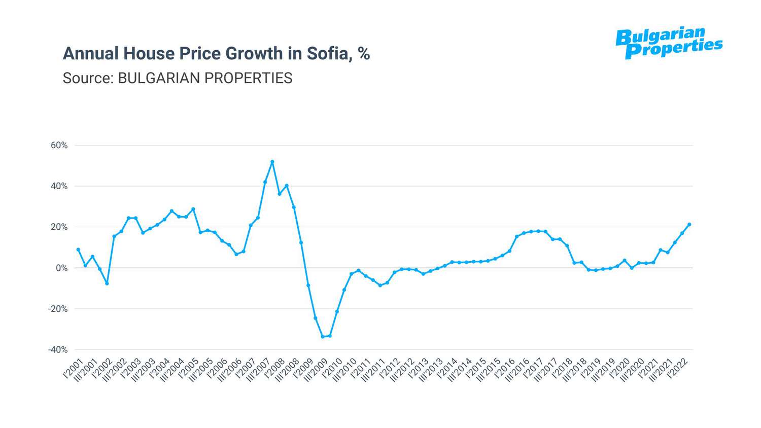 All this has led to an accelerating price growth, which according to BULGARIAN PROPERTIES data reached 21% in Sofia in Q2 of 2022. This represents the fastest increase since 2008.