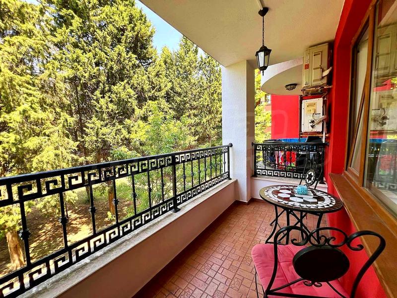 Меблированная трёхкомнатная квартира среди зелени в Приморско г. Приморско Стильное жильё в престижном комплексе всего в 500 м от моря Предлагаем на продажу уютную трёхкомнатную квартиру с юго-западным расположением, находящуюся на втором этаже ухоженного комплекса в Приморско, всего в 500 метрах от пляжа. Район тихий, окружённый зеленью – из окон открывается вид исключительно на густой дубовый лес, который