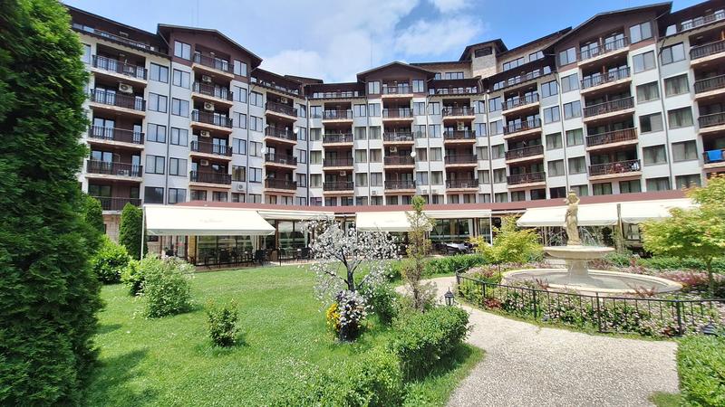 Просторная студия с верандой в комплексе Aspen Golf Вблизи г. Банско , г. Банско Меблированная курортная недвижимость с видом на внутренний двор, рядом с Пирин Гольф и Банско Предлагаем на продажу просторную студию в закрытом комплексе Aspen Golf, расположенном в живописном районе рядом с г. Банско и в непосредственной близости от Pirin Golf & Country Club — локация, которая сочетает спокойствие, красивую природу и отличные возможности для отдыха в