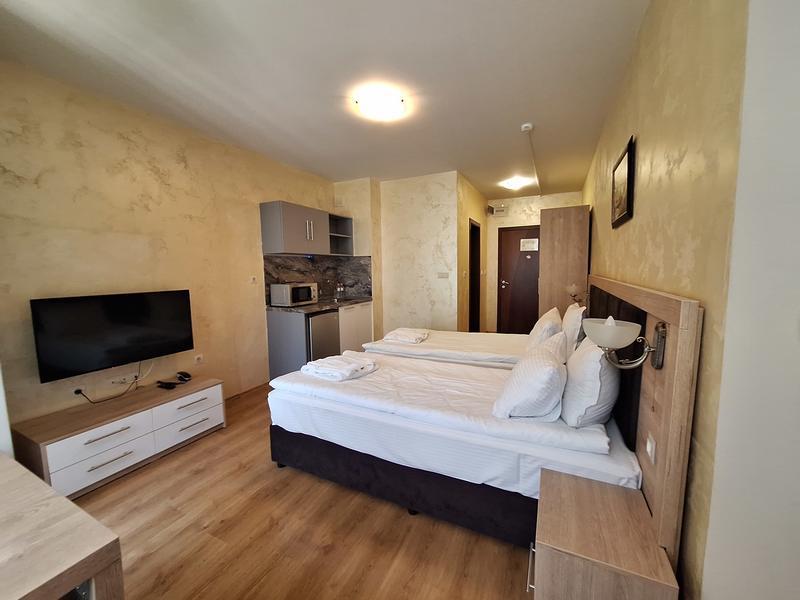 Полностью меблированная и оборудованная двухкомнатная квартира в горах в комплексе Grand Monastery рядом с горнолыжным склоном "Снежанка" (с горячим подключением от комплекса). Элитный закрытый комплекс расположен среди сосновых лесов в самом сердце Родопских гор на солнечном