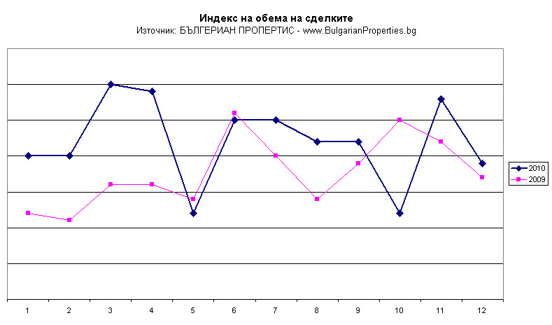 Най-много реализирани сделки за покупки на имоти има през 4-тото тримесечие – с около 20% повече от предходното тримесечие. Новината през 2010 г. за имотите в София беше силният пазар и през традиционно слабите летни месеци на годината. През втората половина на годината сделките в София нараснаха с 30% спрямо първата половина на годината и с 16% спрямо втората половина на 2009 г. Това заедно със стабилизацията на цените показва една започваща тенденция на излизане на пазара от кризата.