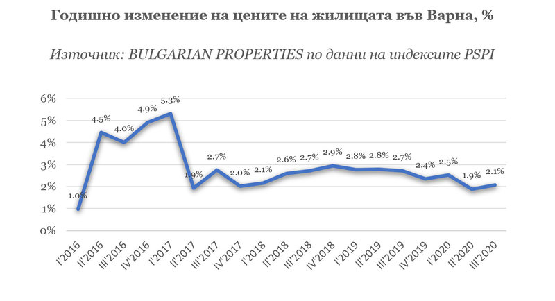 Данните от индексите PSPI сочат още, че през 3-тото тримесечие на 2020 г. средната цена на жилищата във Варна е достигнала 860 евро/кв.м.