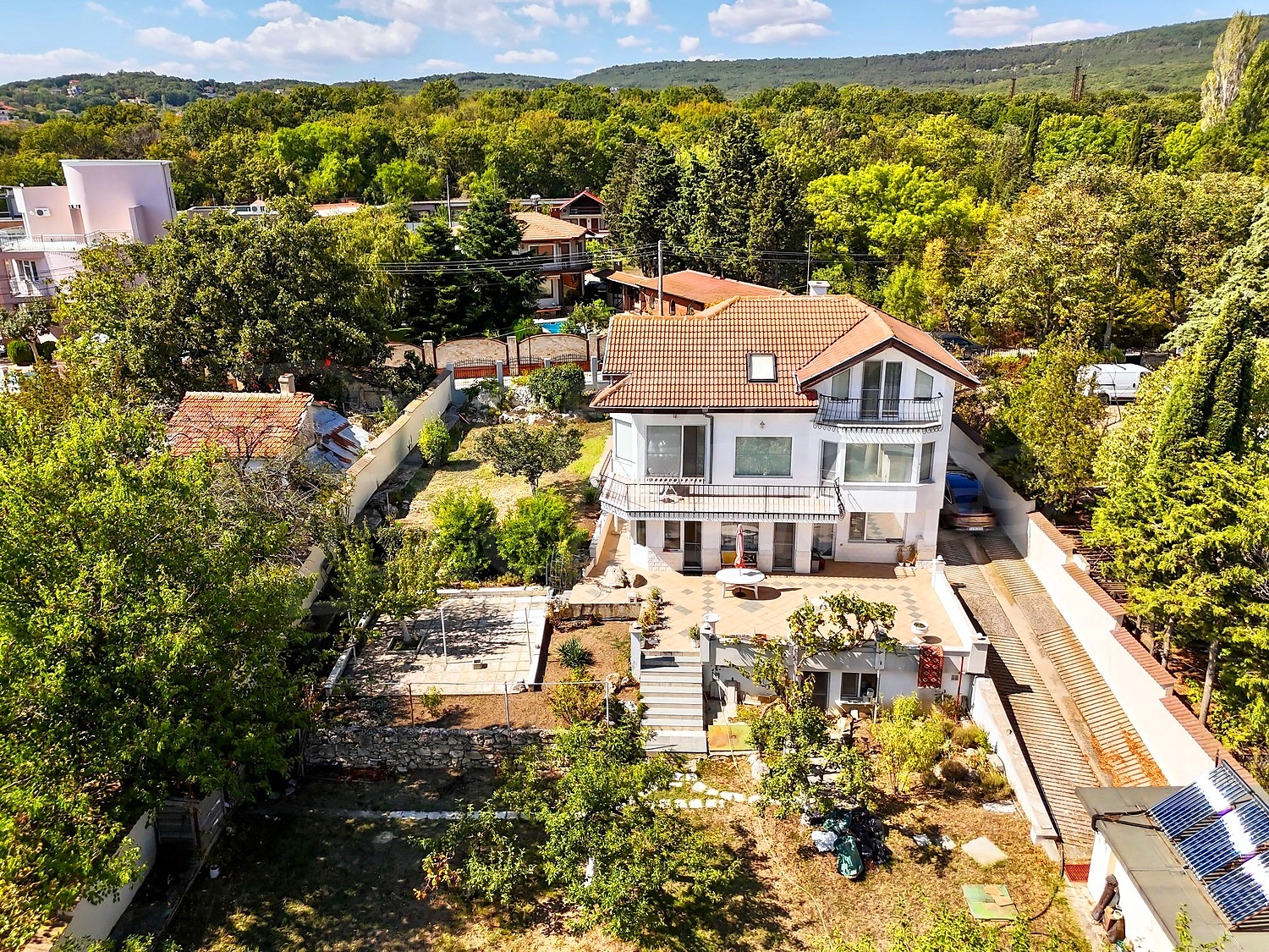 Участок площадью 1162 кв.м, с асфальтированным подъездом и автоматическими воротами. Район спокойный, зелёный и с развитой инфраструктурой, включая канализацию.