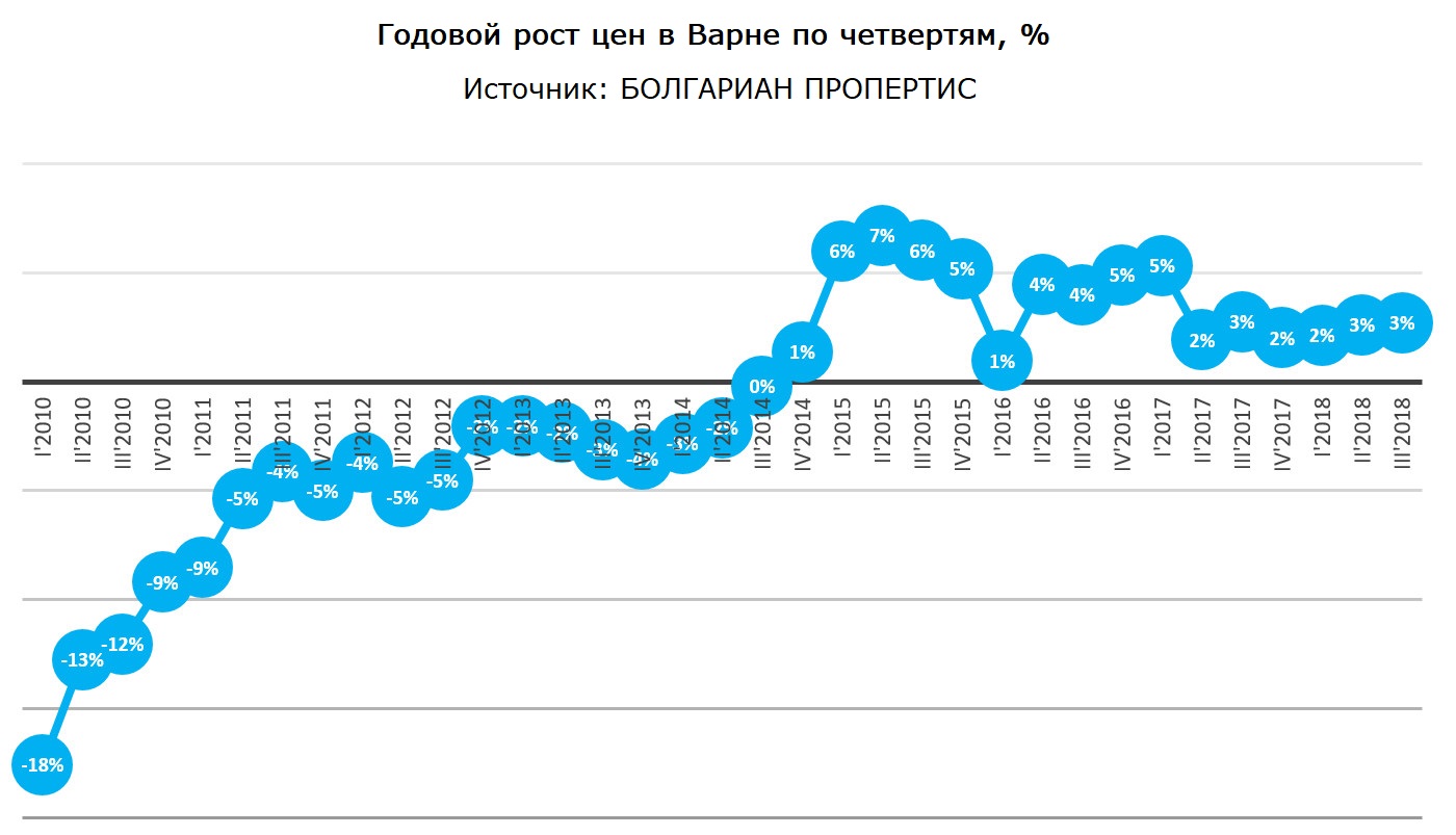 На данный момент предложение соответствует спросу, а рынок в Варне находится в равновесии, темпы роста цен умеренные - в пределах 3-5%, что является здоровым для рынка.