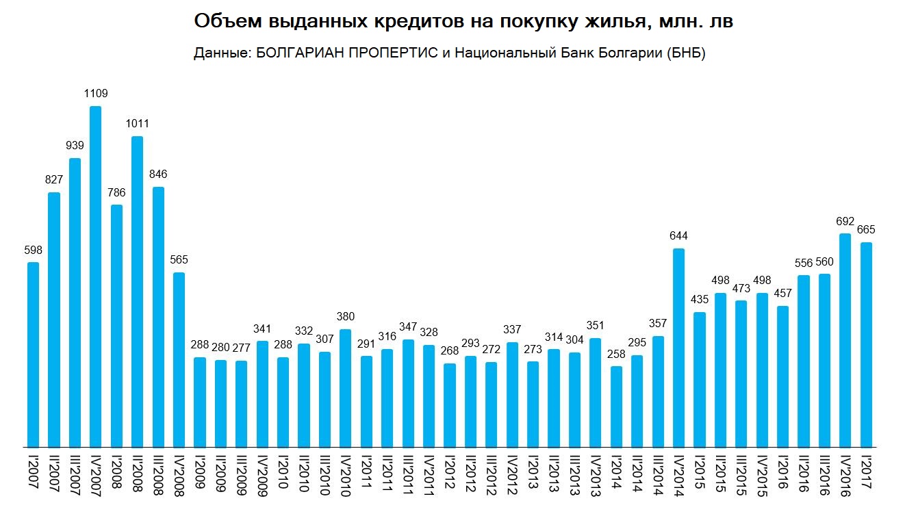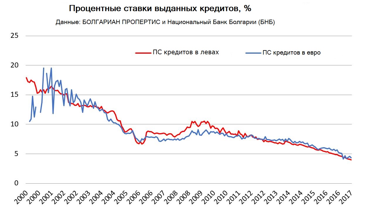 Процентные ставки по ипотечным кредитам упали ниже 4% по данным Национального Банка Болгарии и это исторически самый низкий их уровень. Это стимулирует покупки в кредит. Соответственно, банковское кредитование продолжает расти, выданные кредиты во втором квартале отметили рекорд за последние годы, а это и является одним из основных драйверов жилищного рынка. Несмотря на высокие темпы кредитования, следует отметить, что объемы выданных кредитов по-прежнему вдвое меньше, чем в годы бума, что еще раз подтверждает стабильные условия, в которых развивается рынок сейчас.