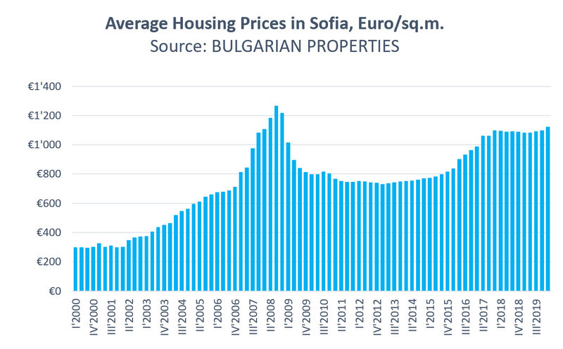 In the first quarter of 2020 price rises accelerated and the average price in Sofia exceeded the 1,100 Ђ/sq.m. barrier, around which it gravitated since the end of 2017.