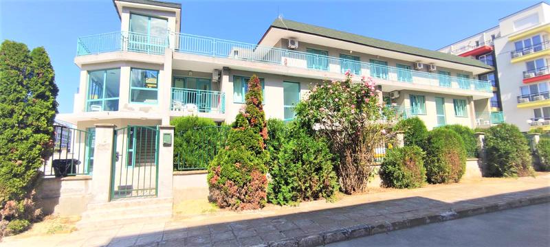 Предлагается к продаже просторная студия, расположенная на последнем этаже ухоженного жилого комплекса в Солнечном Береге, примерно в 800 метрах от пляжа. Локация сочетает удобство центральной части курорта и спокойствие тихой улицы, что делает объект подходящим как для личного