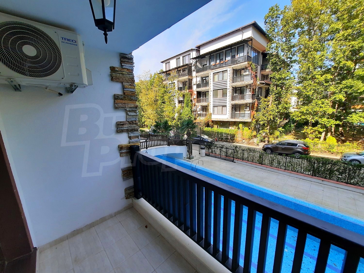 Квартира площадью 29.89 м2. Предлагаемая недвижимость построена в 2023. Отопление кондиционером. Алюминиевые окна, армированная входная дверь, внешняя изоляция, керамогранитный пол, межкомнатные двери, окна пвх и стены покрашенные латексной краской имеются в предлагаемой недвижимости. Недвижимость включает следующую меблировку и оснащение: бойлер электрический, встроенная кухня, вытяжка, духовка, душевая, меблировку, оборудованная ванная комната, телевизор, телефон и холодильник. Из основных коммуникаций обеспечены электричество, вода и центральная канализация. Ванная комната с туалетом, внутренний туалет, внутренняя ванная, парковка вне дороги, терраса, бассейн, комплекс закрытого типа, лифт, общие части с отделкой люкс, заасфальтированная дорога, интернет, интернет Wi-Fi, кабельное телевидение, система охранной сигнализации, спутниковое тв и телефон имеются в наличии среди прочих указанных характеристик предлагаемого объекта, что обеспечит дополнительные удобства для пользования. Виды на бассейн, виды на внутренний двор и виды на лес открываются с недвижимости, раскрывая часть красот живописной Болгарии.