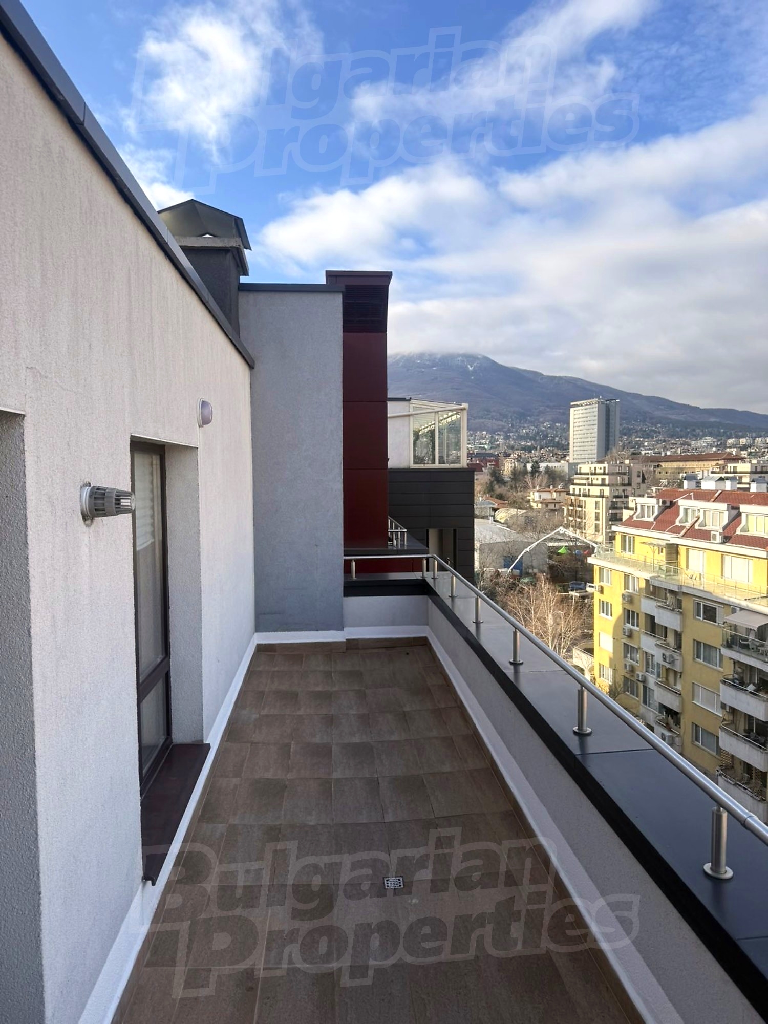 Жильё отличается современной отделкой, функциональной планировкой и большим количеством естественного света. Особое преимущество — просторная панорамная терраса площадью около 15 кв.м с прекрасным видом на гору Витоша, идеально подходящая для отдыха.