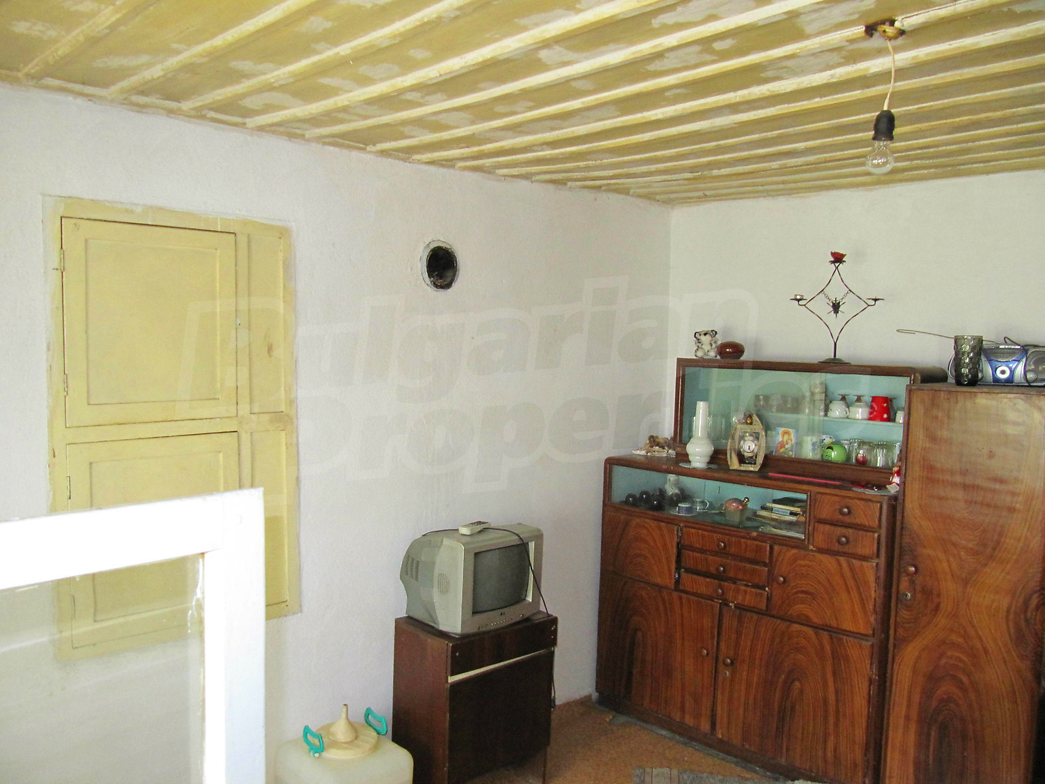Площадь дома разпределена так: прихожая, три комнаты, ванная комната и кладовая. Полы и оконные рамы деревянные, стены из саманного кирпича. Туалет внешний и находится во дворе, проведено електричество, вода (снаружи и внутри), своя септическая яма. Жилье в целом нуждается в ремонте.
