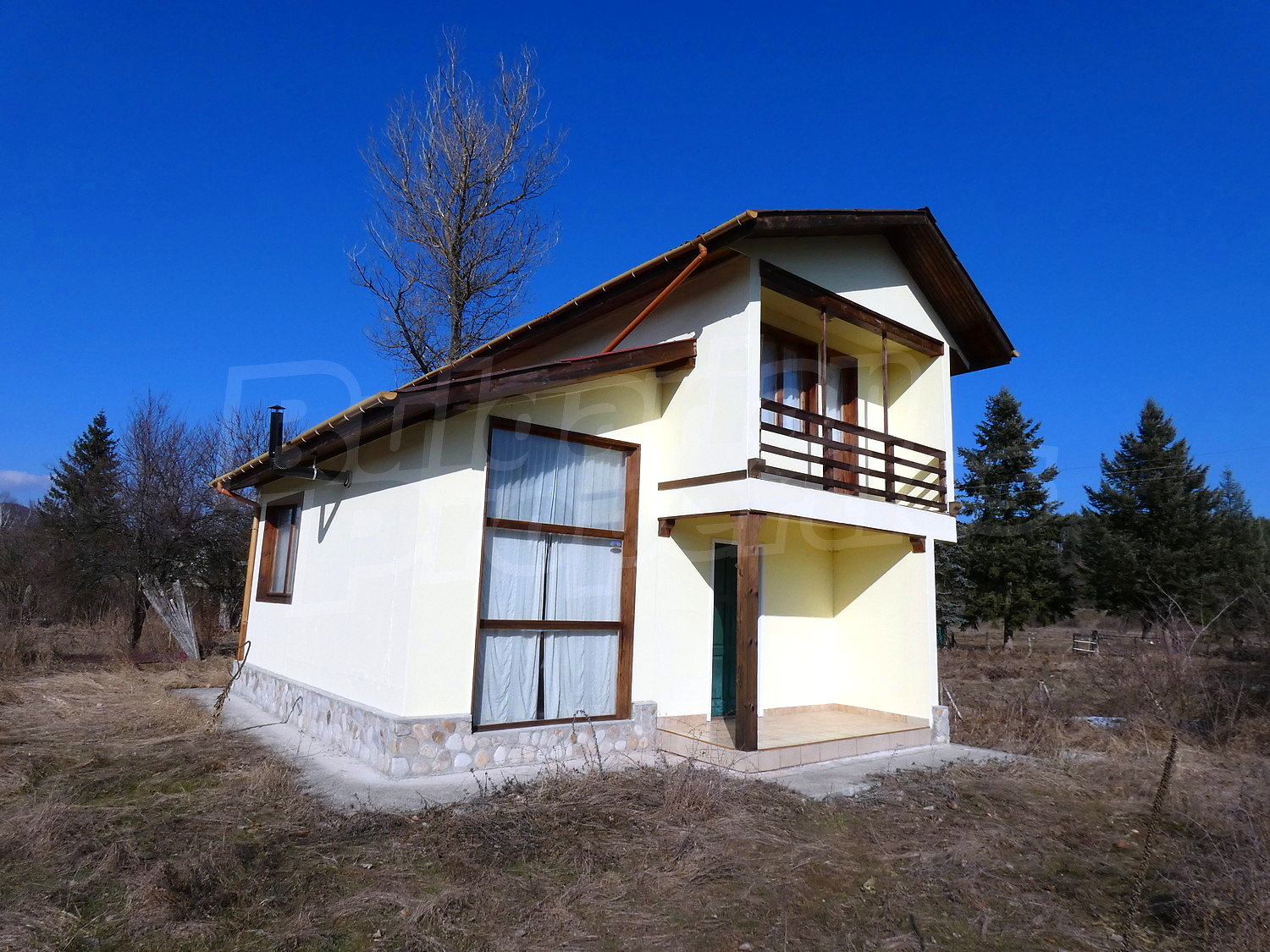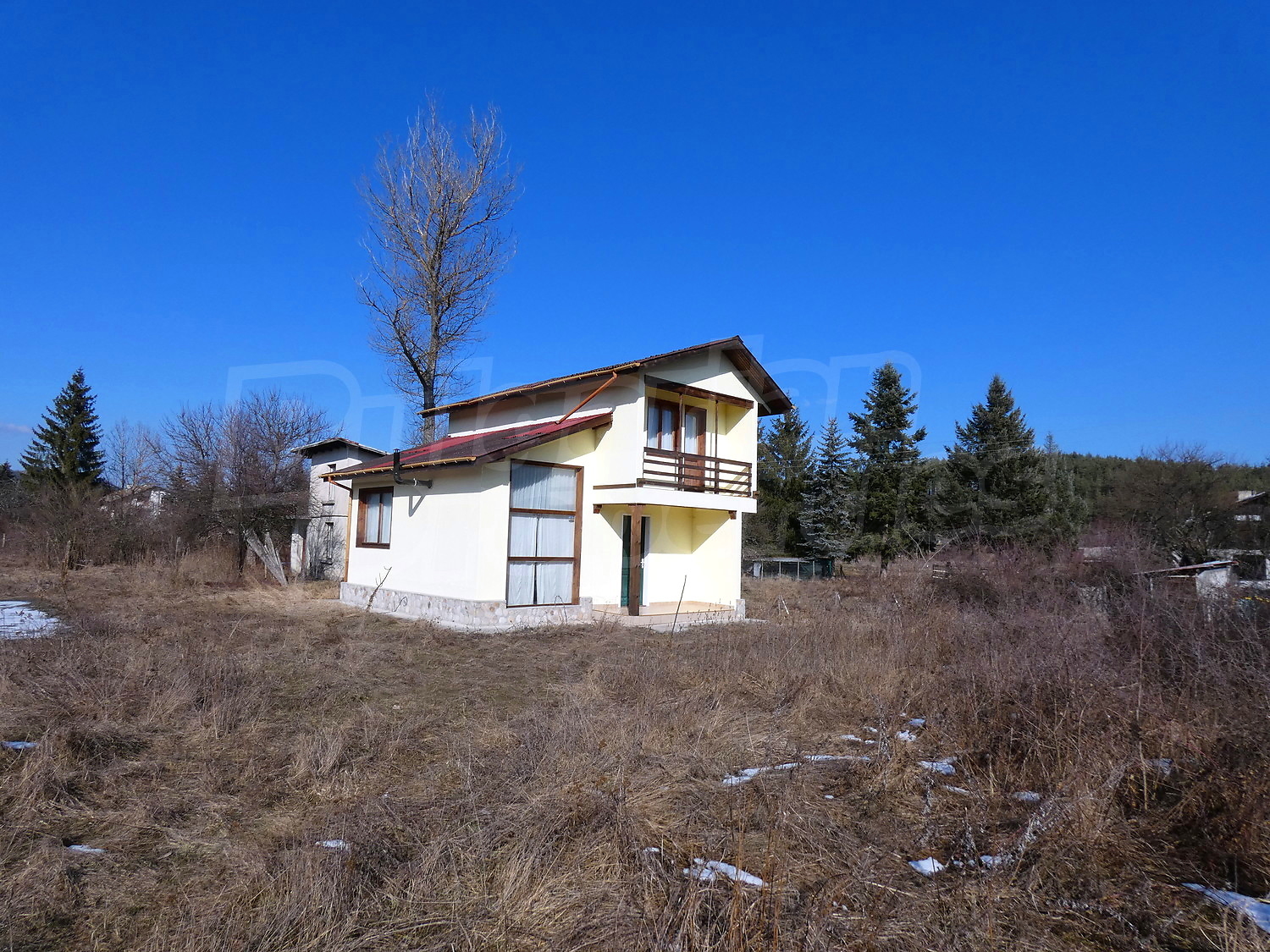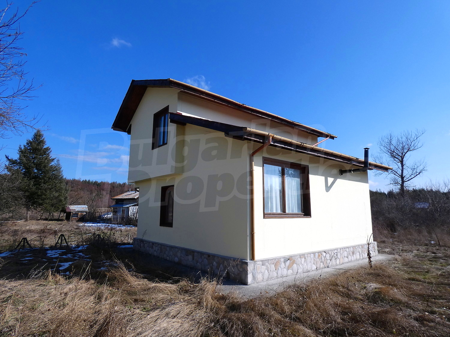 Недавно построенная двухэтажная дача имеет юго-восточное расположение. Площадь виллы – 82.40 кв.м. На первом этаже расположена гостиная, совмещенная с кухней и обеденной зоной, ванная комната с туалетом, прихожая и веранда. На первом этаже на полу – плитка. Деревянная внутренняя лестница ведет ко второму этажу, где расположены две спальни, ванная комната с туалетом и терраса. На полу – высококачественный ламинированный паркет в комнатах и плитка в гостиной и коридоре. Дом продается с мебелью. Кухня полностью оборудованная: керамическая плита, раковина, шкафы, конфорки, духовка, холодильник, стол с шестью стульями. В гостиной есть два дивана и камин. В одной из спален есть двуспальная кровать, две прикроватные тумбочки, стеллажи, а в другой спальне вы найдете две кровати и вешалку. Ванная комната оборудована душевой кабиной, умывальником с зеркалом, туалет, бойлером. Отопление с помощью обогревателя и камина. В доме есть сигнализация. Сад площадью 290 кв.м. с видом на близлежащий лес.