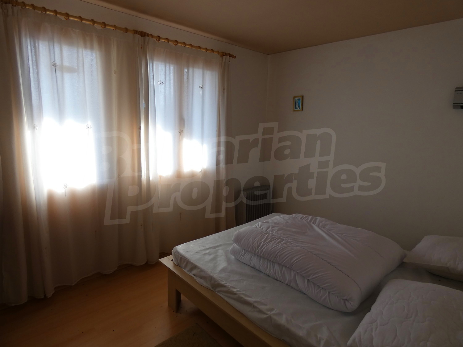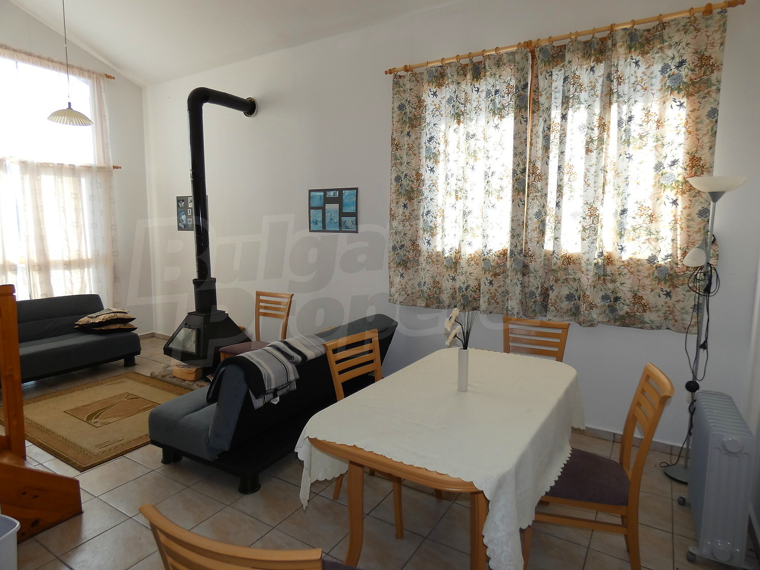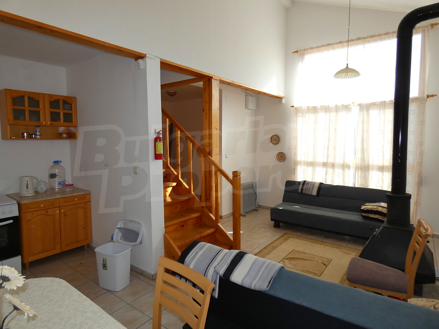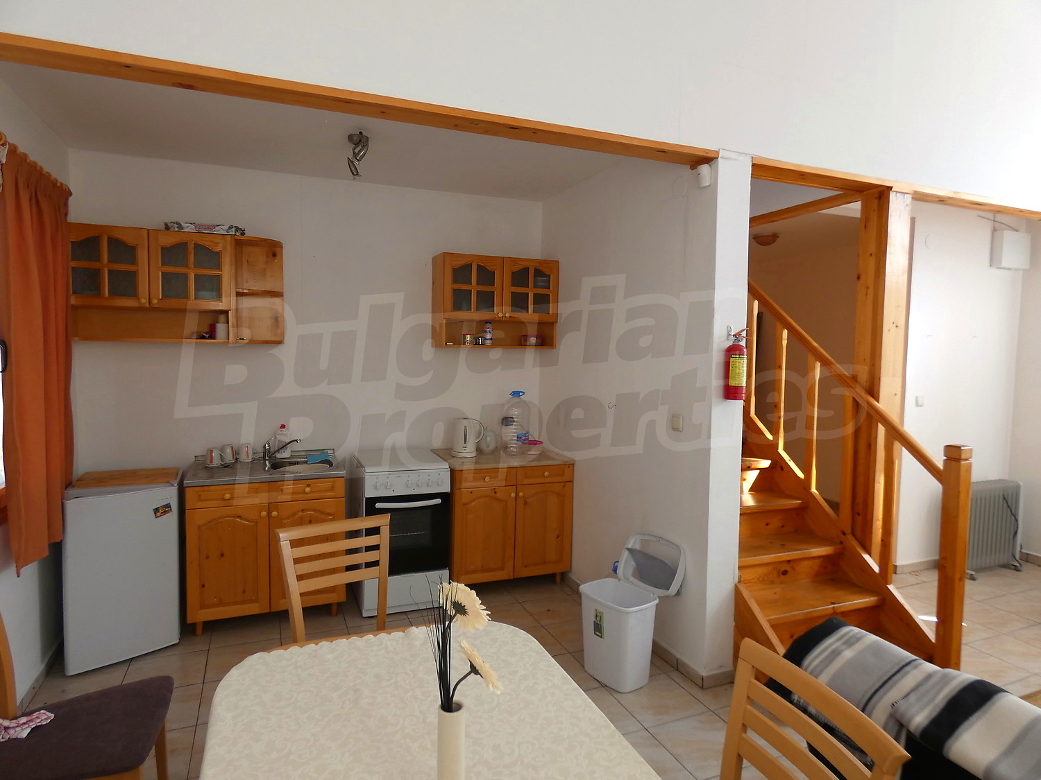 Недавно построенная двухэтажная дача имеет юго-восточное расположение. Площадь виллы – 82.40 кв.м. На первом этаже расположена гостиная, совмещенная с кухней и обеденной зоной, ванная комната с туалетом, прихожая и веранда. На первом этаже на полу – плитка. Деревянная внутренняя лестница ведет ко второму этажу, где расположены две спальни, ванная комната с туалетом и терраса. На полу – высококачественный ламинированный паркет в комнатах и плитка в гостиной и коридоре. Дом продается с мебелью. Кухня полностью оборудованная: керамическая плита, раковина, шкафы, конфорки, духовка, холодильник, стол с шестью стульями. В гостиной есть два дивана и камин. В одной из спален есть двуспальная кровать, две прикроватные тумбочки, стеллажи, а в другой спальне вы найдете две кровати и вешалку. Ванная комната оборудована душевой кабиной, умывальником с зеркалом, туалет, бойлером. Отопление с помощью обогревателя и камина. В доме есть сигнализация. Сад площадью 290 кв.м. с видом на близлежащий лес.