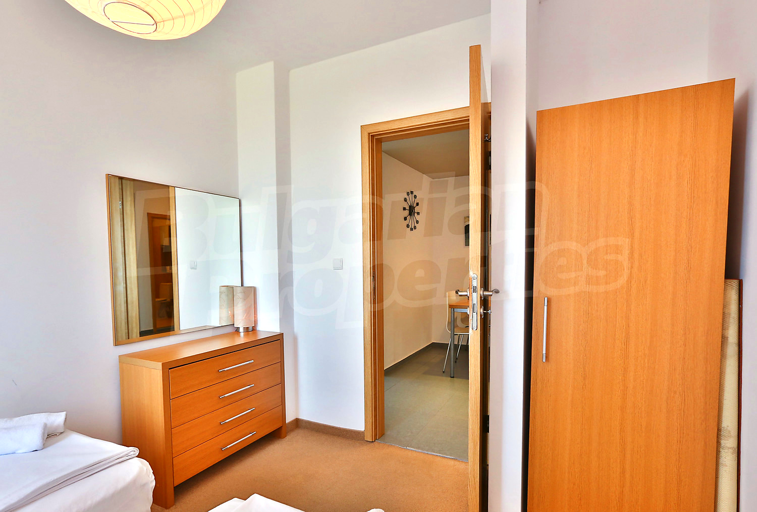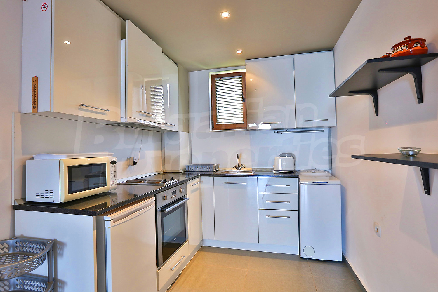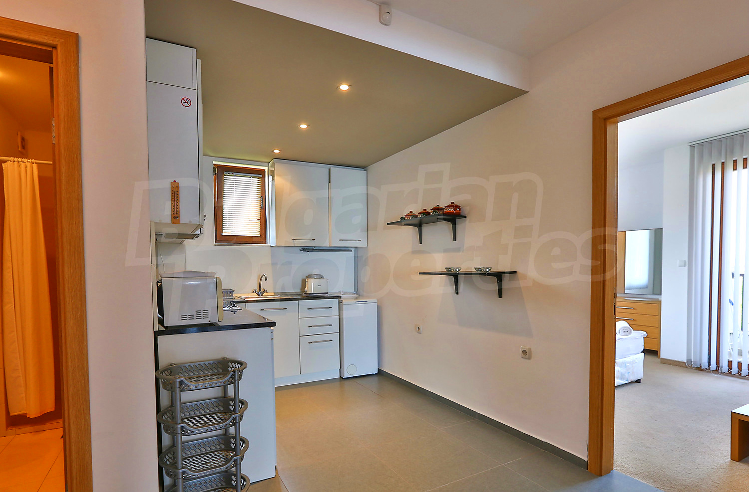 Предлагаемая недвижимость построена в 2008. Отопление кондиционером. Ковровый настил, окна пвх, покрашенные стены и терракотовый пол имеются в предлагаемой недвижимости. Недвижимость включает следующую мебель и оснащение: встроенная кухня, мебель и оборудованная ванная комната. Из основных коммуникаций обеспечены электричество, вода и центральная канализация. Терраса, бассейн, комплекс закрытого типа, лифт, общие части с отделкой люкс, заасфальтированная дорога, интернет и кабельное телевидение имеются в наличии среди прочих обозначенных характеристик предлагаемого объекта, что обеспечит дополнительный комфорт для пользования. Виды на море открываются с недвижимости, раскрывая часть красот живописной Болгарии.