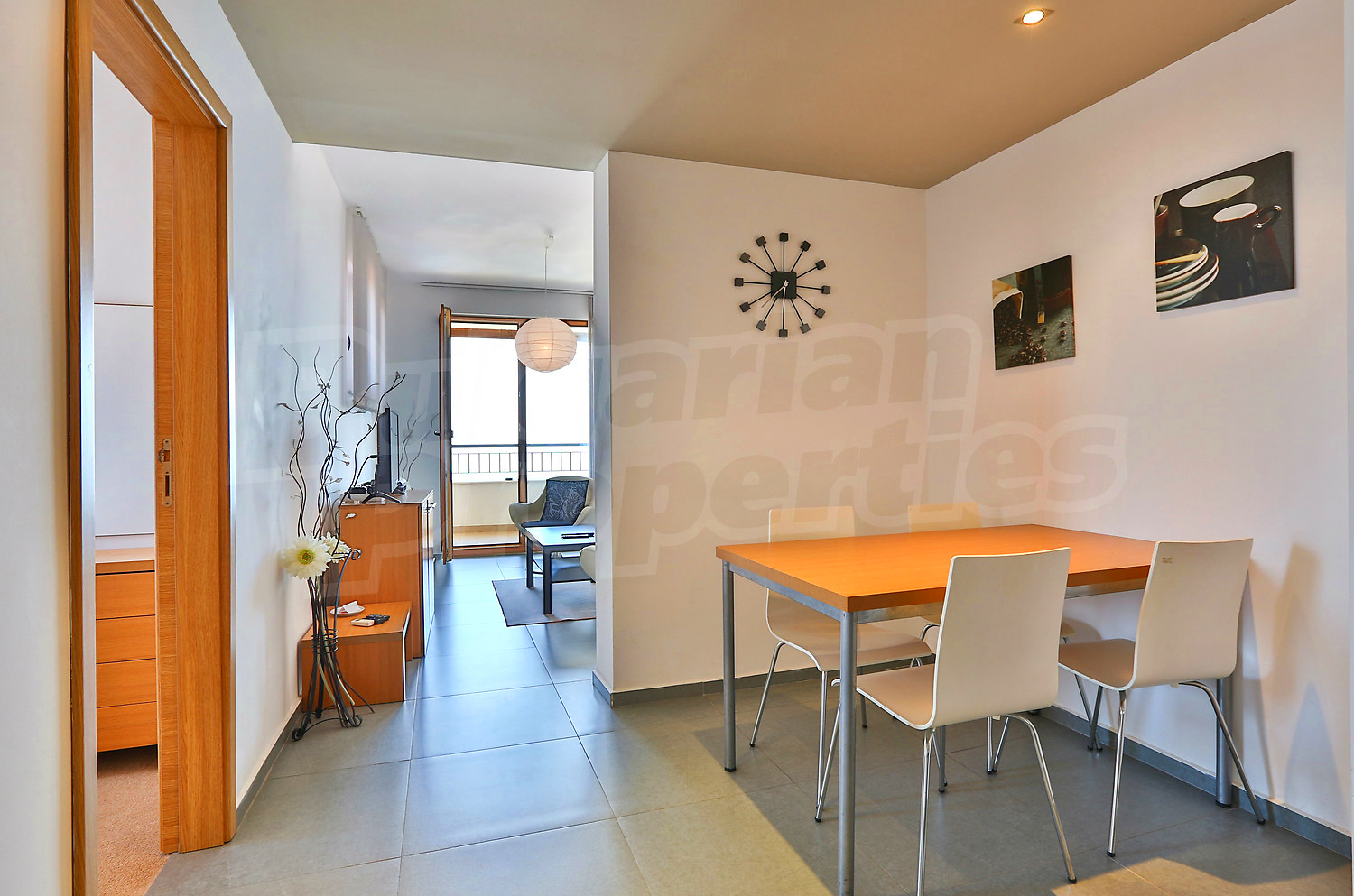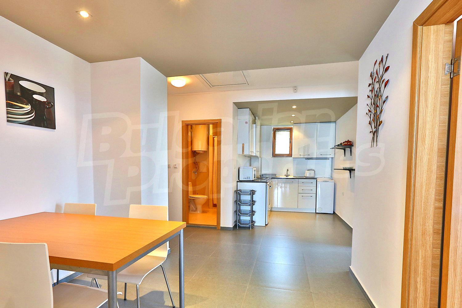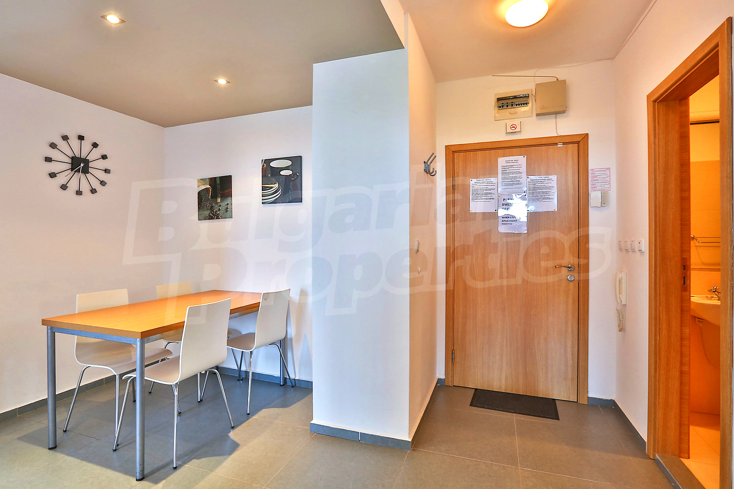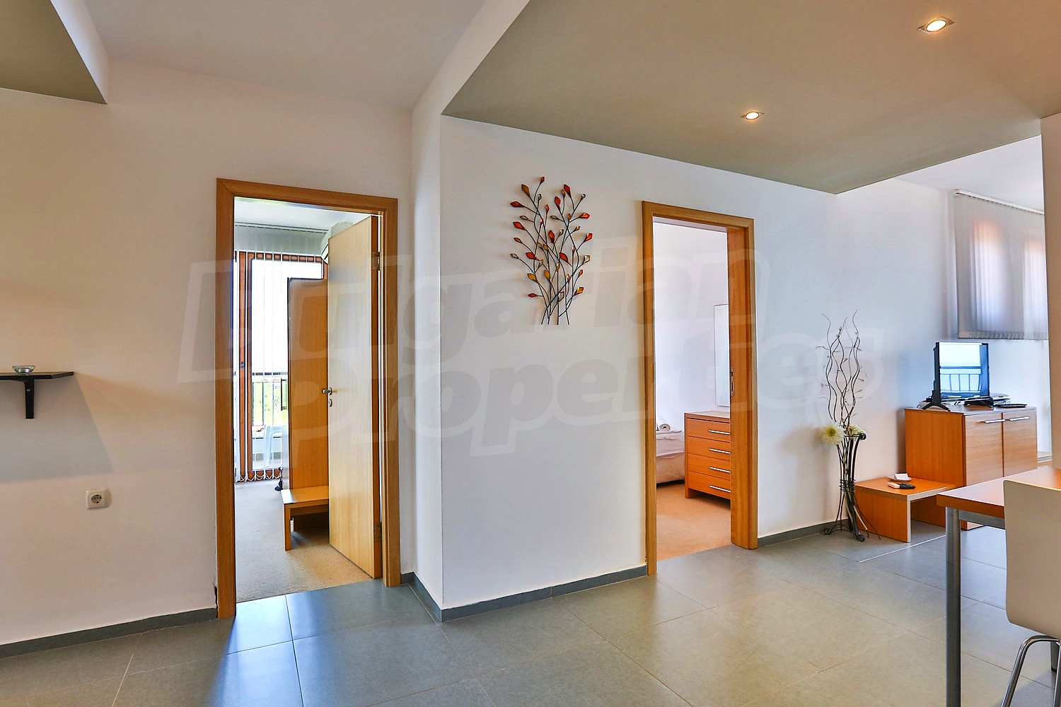 Предлагаемая недвижимость построена в 2008. Отопление кондиционером. Ковровый настил, окна пвх, покрашенные стены и терракотовый пол имеются в предлагаемой недвижимости. Недвижимость включает следующую мебель и оснащение: встроенная кухня, мебель и оборудованная ванная комната. Из основных коммуникаций обеспечены электричество, вода и центральная канализация. Терраса, бассейн, комплекс закрытого типа, лифт, общие части с отделкой люкс, заасфальтированная дорога, интернет и кабельное телевидение имеются в наличии среди прочих обозначенных характеристик предлагаемого объекта, что обеспечит дополнительный комфорт для пользования. Виды на море открываются с недвижимости, раскрывая часть красот живописной Болгарии.
