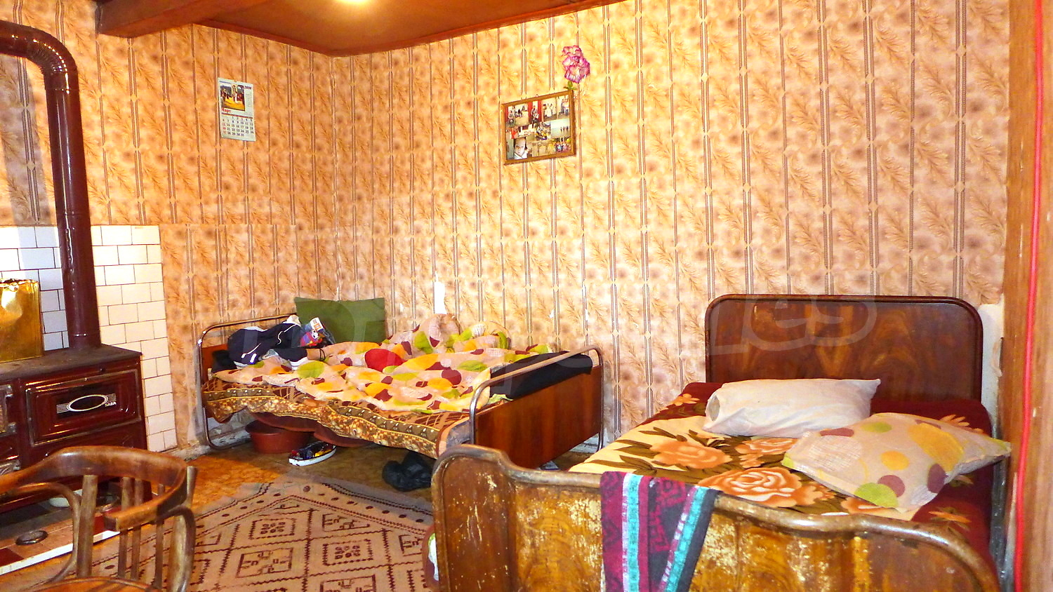 Дом площадью 105 кв. метров и сад 1310 кв. м. Деревянные оконные рамы и деревянные полы имеются в предлагаемой недвижимости. Из основных коммуникаций обеспечены электричество и вода. Внешний туалет, кладовая, обозначенная стоянка, парковка вне дороги и терраса имеются в наличии среди прочих характеристик предлагаемого объекта, что обеспечит дополнительный комфорт для пользования.