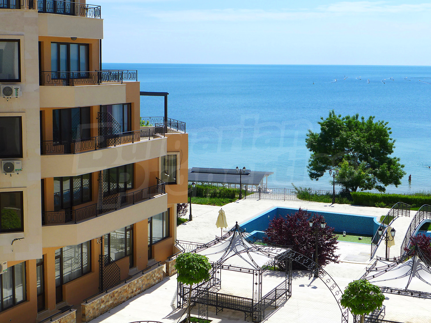 Предлагаем на продажу три квартиры с одной спальней с прекрасным видом на море в закрытом комплексе Рич 2 / Rich 2 на первой линии до пляжа Аурелия (50 м) в Равде. Комплекс расположен в тихом и спокойном месте, недалеко от центрального пляжа, магазинов и ресторанов, набережных. Апарт-отель подходит не только для летнего отдыха, но и для постоянного проживания. Аэропорт Бургас находится всего в 25 км.