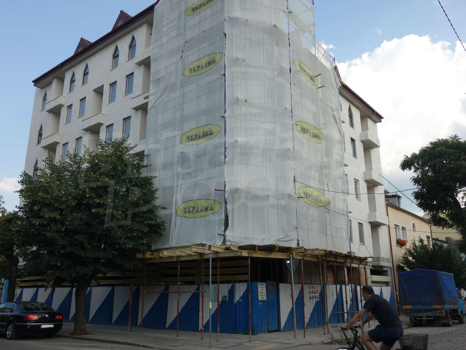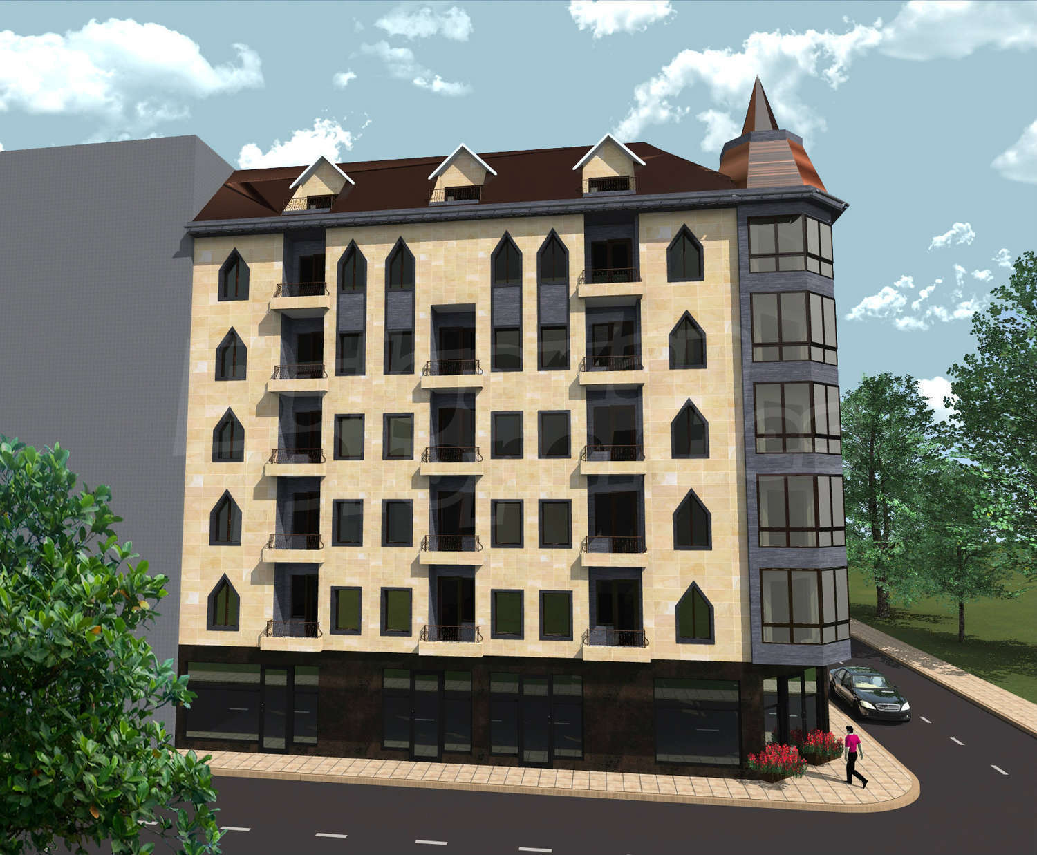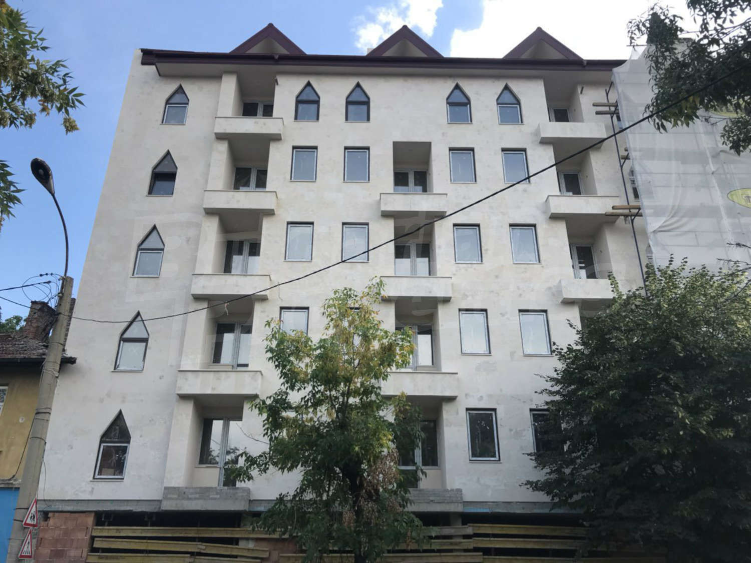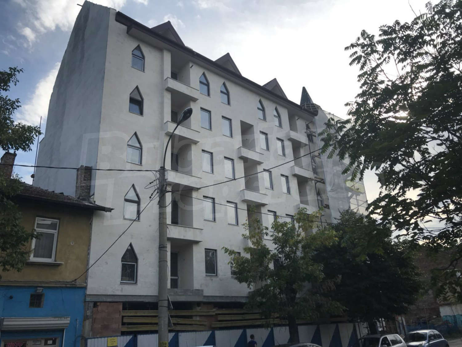 - Новострояща се жилищна сграда на 6 етажа с 22 апартамента, заведение за хранене и магазини