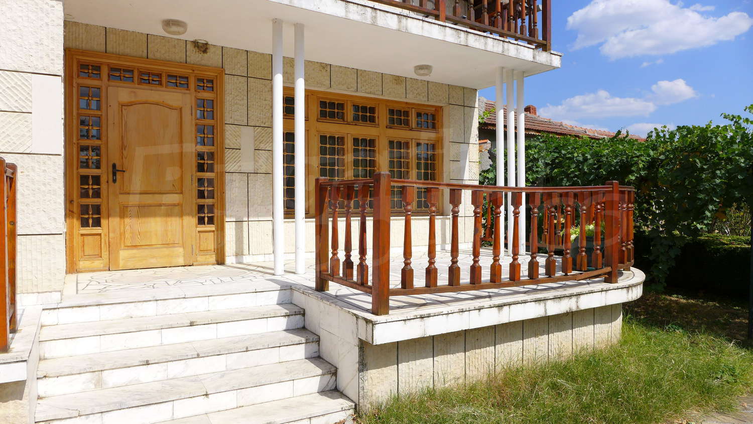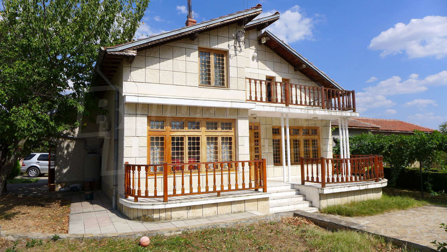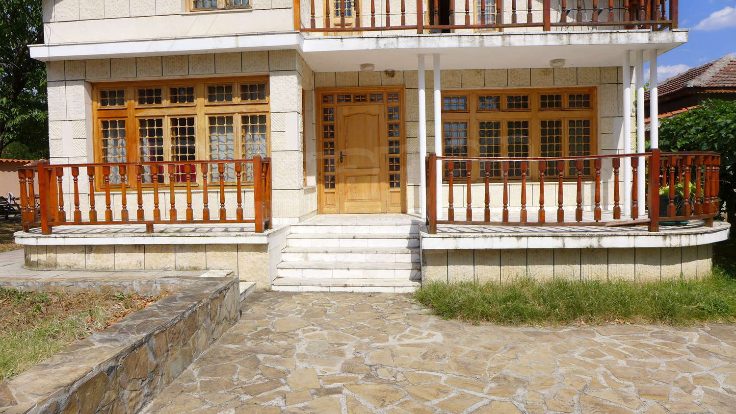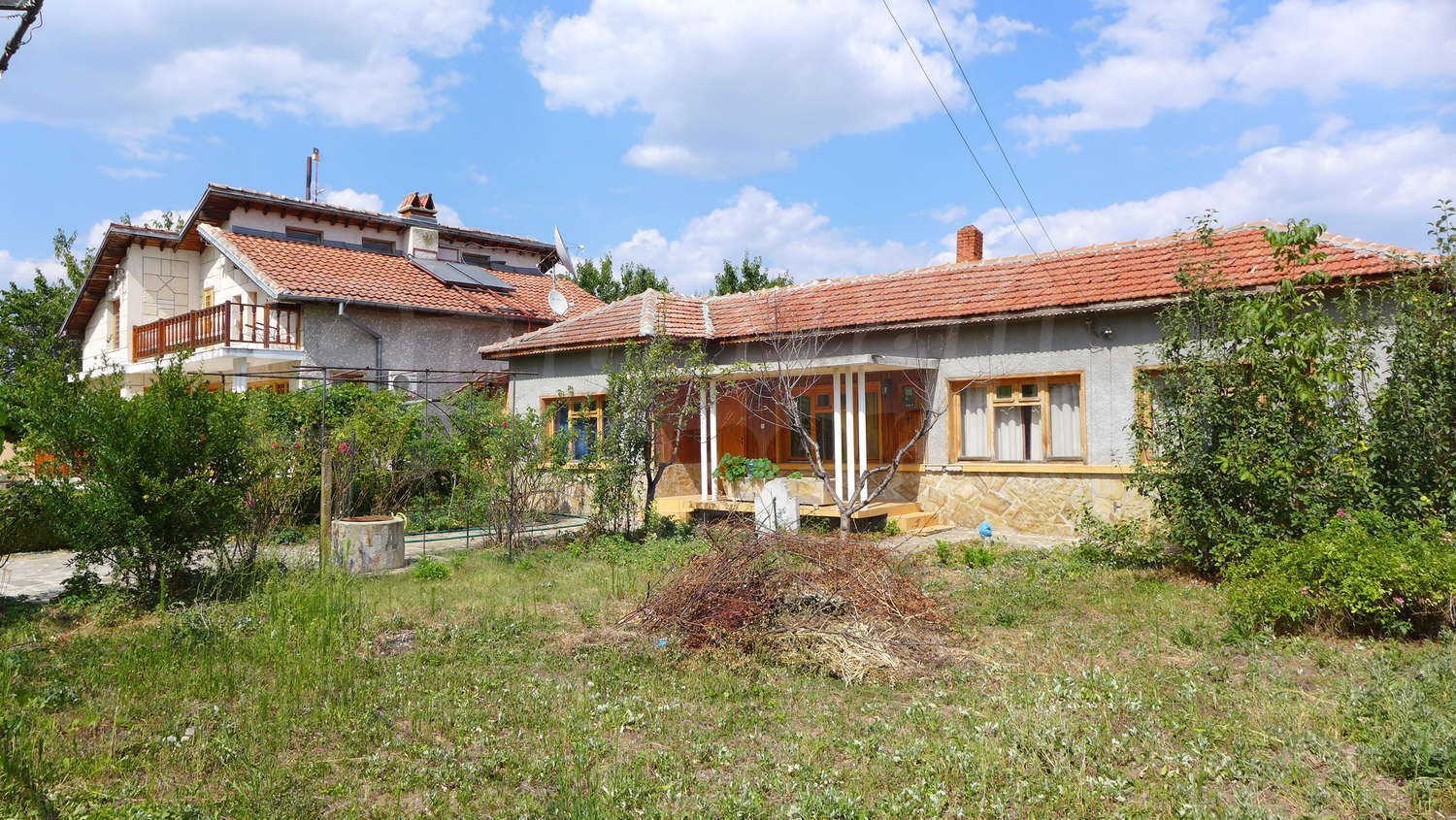 Недвижимость вкратце состоит из двухэтажного большого дома, однаэтажного дома, склада, стоянка, гараж, хозяйственные постройки и обширный сад 1525 кв м.