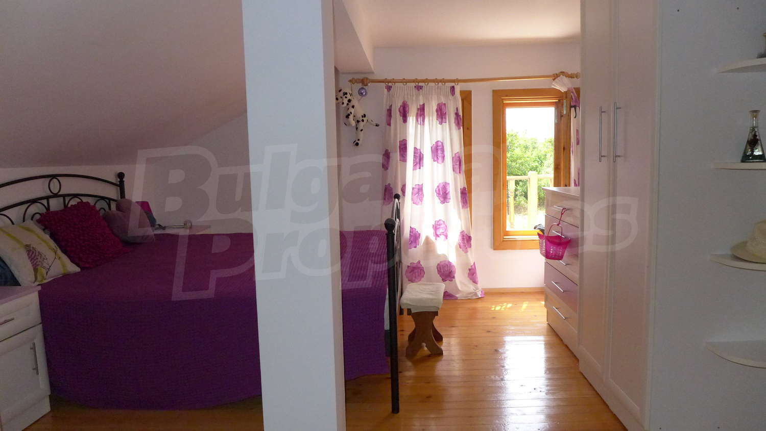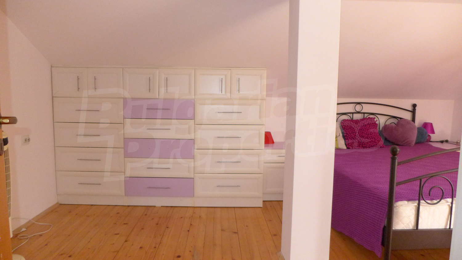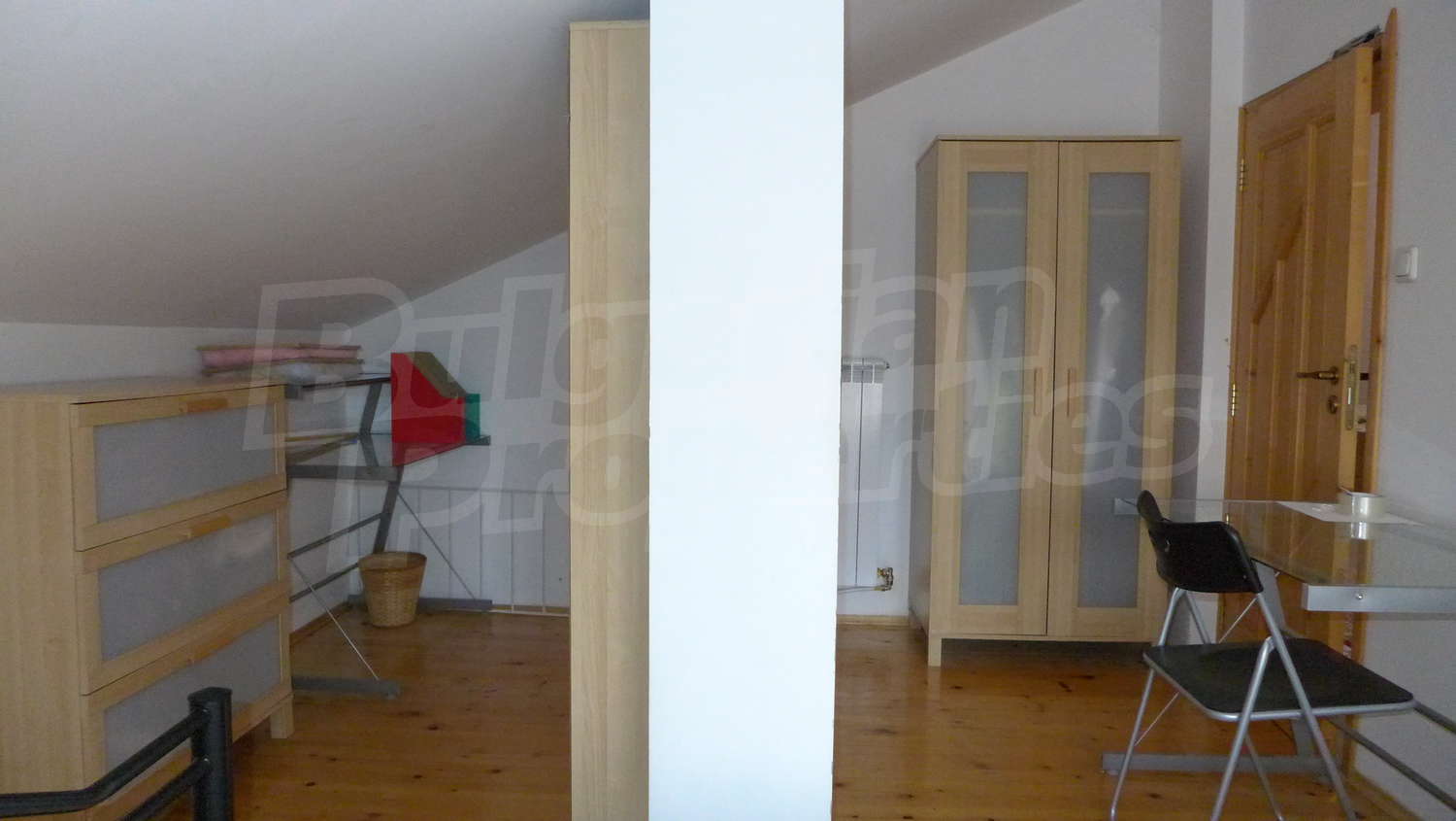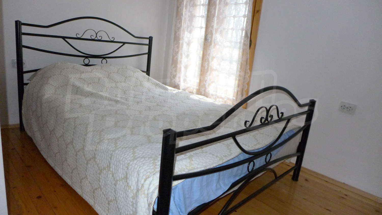 Второй этаж: Внутренняя лестница ведет к нему. Здесь есть коридор, 3 спальни, туалет / ванная комната и терраса. Стены латекс, пол деревянный, окна деревянные. Установлены радиаторы.