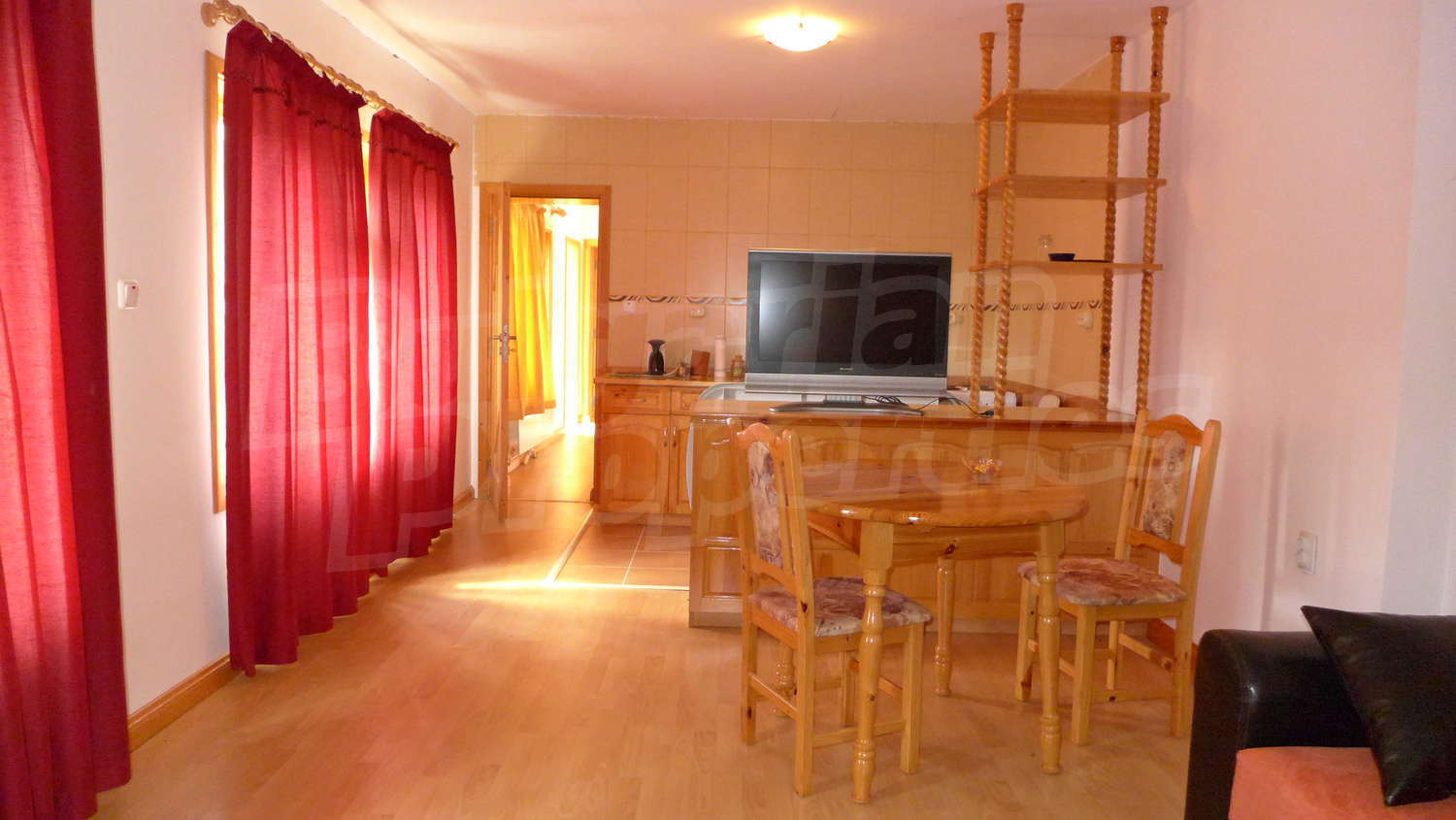 Планировка включает коридор, гостиную с кухней, спальни, склада, туалета / ванной комнаты и веранды. Стены - латекс, полы с ламинированным паркетом, окна деревянные.
