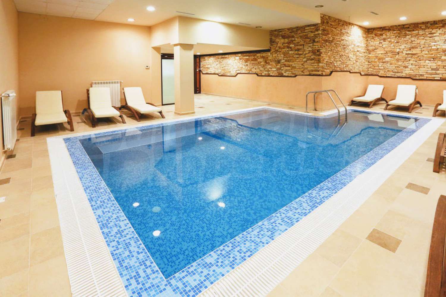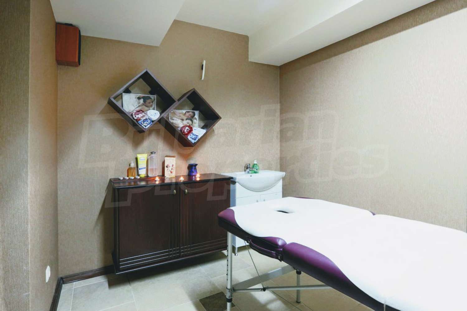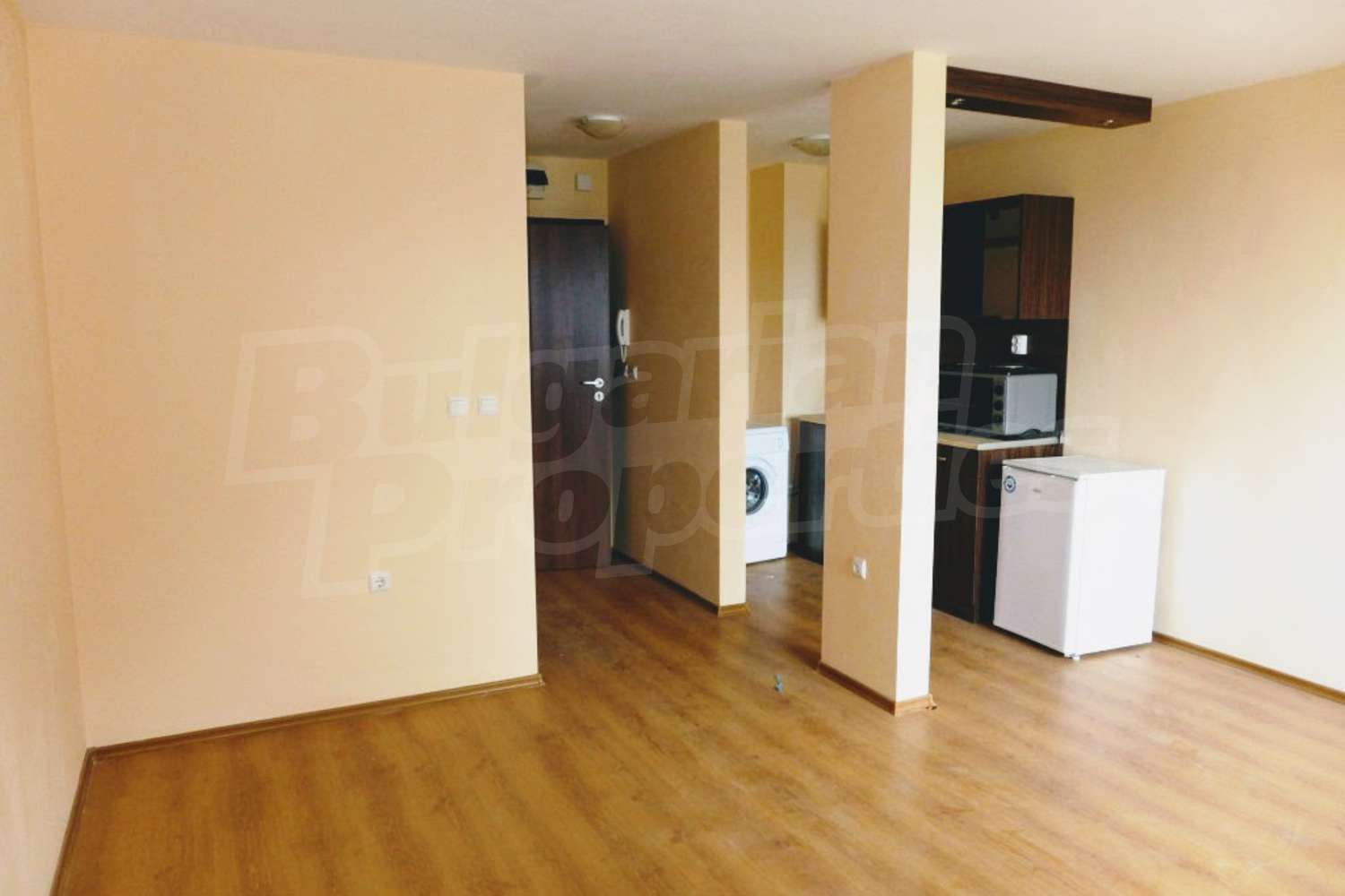 Квартира-студия площадью 42.27 м2. Предлагаемая недвижимость построена в 2010. Отопление на электрических радиаторах. Ламинированный пол, окна пвх и покрашенные стены имеются в предлагаемой недвижимости. Недвижимость включает следующую меблировку и оборудование: духовка, оборудованная ванная комната, стиральная машина и холодильник. Из основных коммуникаций обеспечены электричество, вода и канализация. Ванная комната с туалетом, терраса, комплекс закрытого типа, консьерж, интернет, кабельное телевидение и телефон имеются в наличии среди прочих упомянутых характеристик предлагаемого объекта, что обеспечит дополнительные удобства для пользования. Виды на горы открываются с недвижимости, раскрывая часть красот живописной Болгарии.
