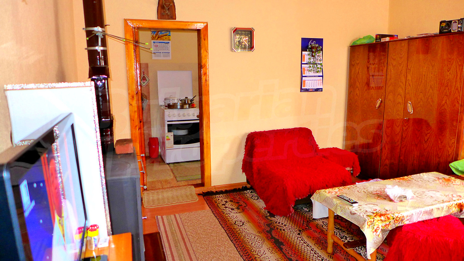 Дом площадью 77 кв.м. Предлагаемая недвижимость построена в 1970. Отопление на дровах. Деревянные оконные рамы, деревянные полы, ковровый настил и ламинированный пол имеются в предлагаемой недвижимости. Недвижимость включает следующую мебель и оснащение: мебель и оборудованная ванная комната. Из основных коммуникаций обеспечены электричество, вода и септическая яма. Заасфальтированная дорога имеются в наличии среди прочих отличительных характеристик предлагаемого объекта, что обеспечит дополнительные удобства для пользования. Виды на внутренний двор и виды на село открываются с недвижимости, раскрывая часть красот живописной Болгарии.