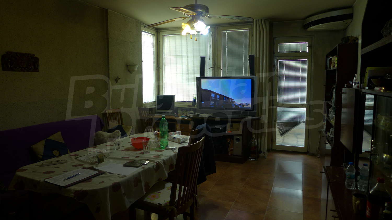 Трехкомнатная квартира площадью 102 кв. метров. Предлагаемая недвижимость построена в 1988. Центральное отопление. Ламинированный пол, межкомнатные двери, обои на стенах, окна пвх, паркетный пол, стены покрашенные латексной краской и терракотовый пол имеются в предлагаемой недвижимости. Из основных коммуникаций обеспечены электричество, вода и центральная канализация. Балконы, ванная комната с туалетом, кладовая, парковка вне дороги, подвал, лифт и заасфальтированная дорога имеются в наличии среди прочих перечисленных характеристик предлагаемого объекта, что обеспечит дополнительный комфорт для пользования. Виды на город открываются с недвижимости, раскрывая часть красот живописной Болгарии.