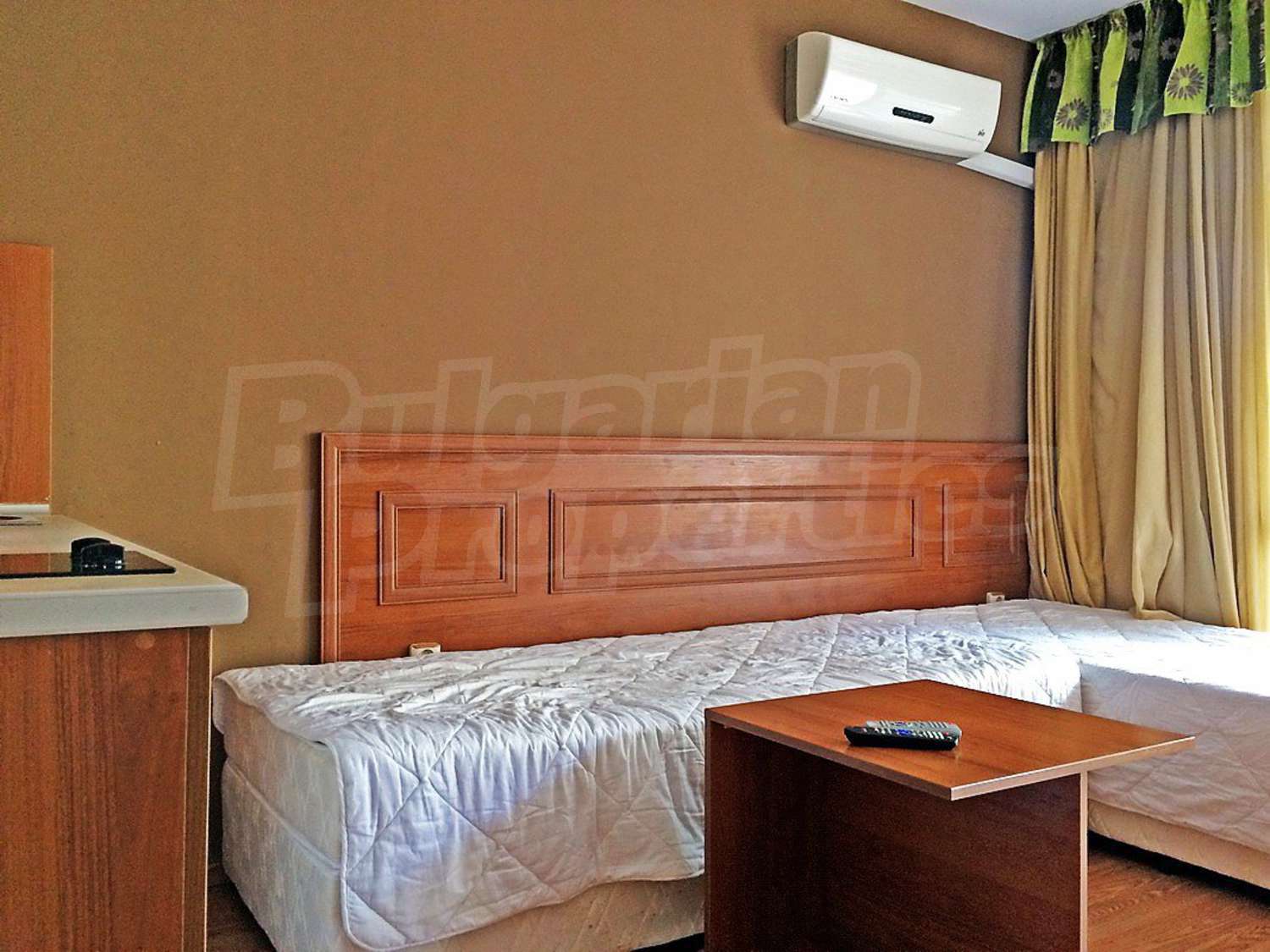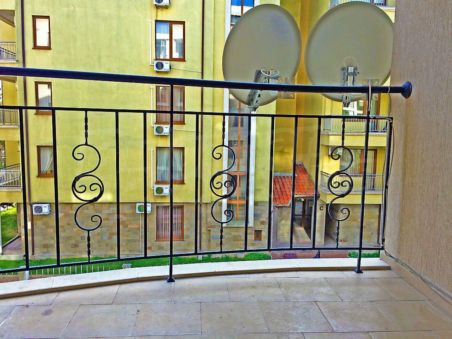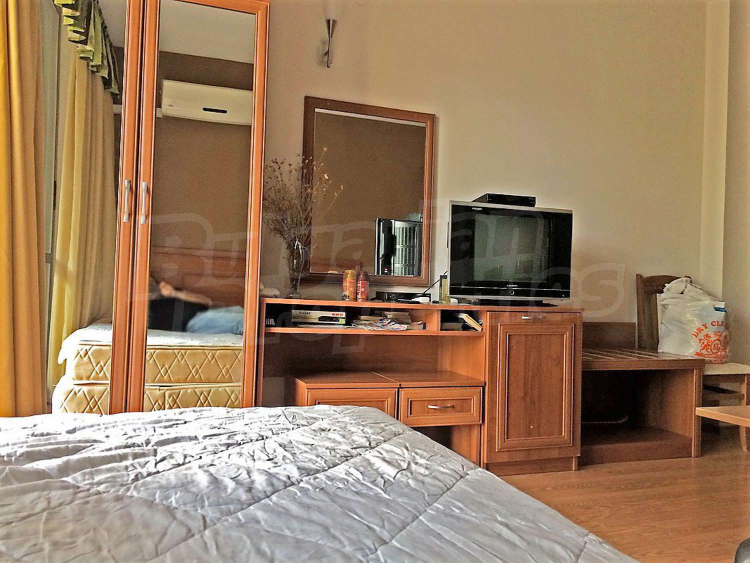 Квартира-студия площадью 35 кв.м. Предлагаемая недвижимость построена в 2007. Отопление кондиционером. Обеспечено кондиционирование следующего типа: стандартные кондиционеры. Внешняя изоляция, ламинированный пол, межкомнатные двери, окна пвх, стены покрашенные латексной краской и терракотовый пол имеются в предлагаемой недвижимости. Недвижимость включает следующую меблировку и оборудование: бойлер электрический, вытяжка, кондиционер, меблировку, оборудованная ванная комната, телевизор и холодильник. Из основных коммуникаций обеспечены электричество, вода и центральная канализация. Ванная комната с туалетом, обозначенная стоянка, терраса, бассейн, комплекс закрытого типа, консьерж, лифт, сауна, тренажерный зал, заасфальтированная дорога, интернет и кабельное телевидение имеются в наличии среди прочих обозначенных характеристик предлагаемого объекта, что обеспечит дополнительный комфорт для пользования. Виды на внутренний двор открываются с недвижимости, раскрывая часть красот живописной Болгарии.