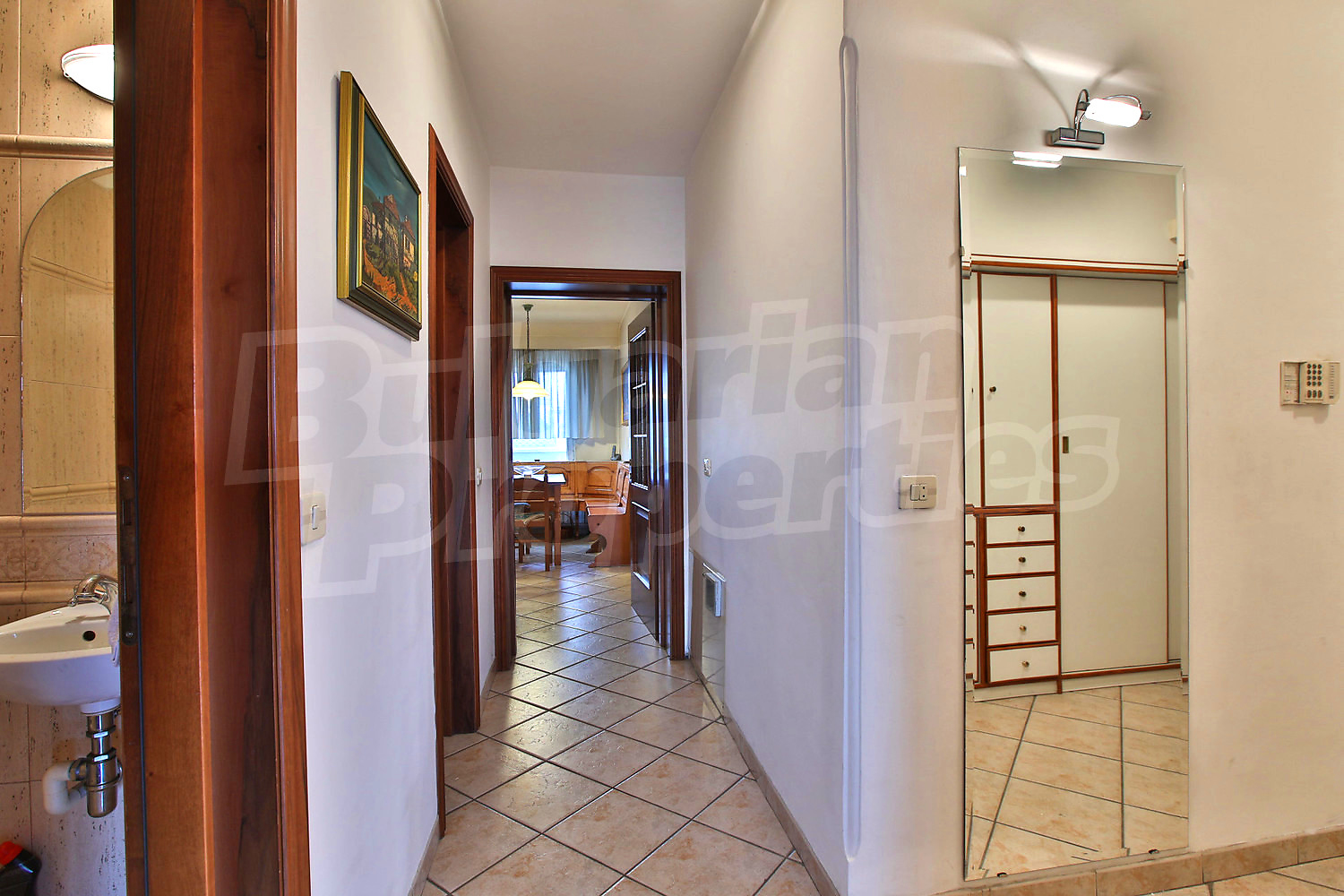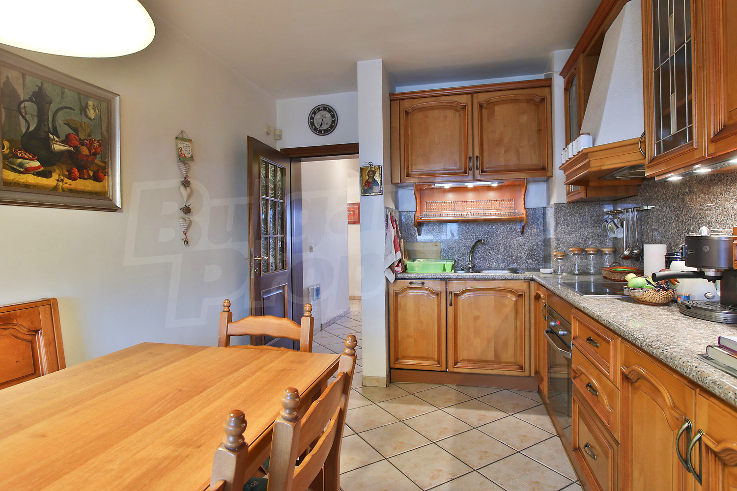 Четырехкомнатная квартира площадью 210 кв.м. Предлагаемая недвижимость построена в 1998. Отопление кондиционером, отопление на электрических радиаторах и отопление на электроконвекторах. Обеспечено кондиционирование следующего типа: стандартные кондиционеры. Внешняя изоляция, керамогранитный пол, ламинированный пол, межкомнатные двери, окна пвх, стены покрашенные латексной краской и терракотовый пол имеются в предлагаемой недвижимости. Недвижимость включает следующую мебель и оснащение: бойлер электрический, встроенная кухня, вытяжка, духовка, душевая, кондиционер, мебель, оборудованная ванная комната, стиральная машина, телевизор и холодильник. Из основных коммуникаций обеспечены электричество, центральное водоснабжение и центральная канализация. Балконы, ванная комната с туалетом, парковка вне дороги, парковочное место, лифт, заасфальтированная дорога, интернет, кабельное телевидение и телефон имеются в наличии среди прочих отличительных характеристик предлагаемого объекта, что обеспечит дополнительные удобства для пользования. Виды на населенный пункт открываются с недвижимости, раскрывая часть красот живописной Болгарии.