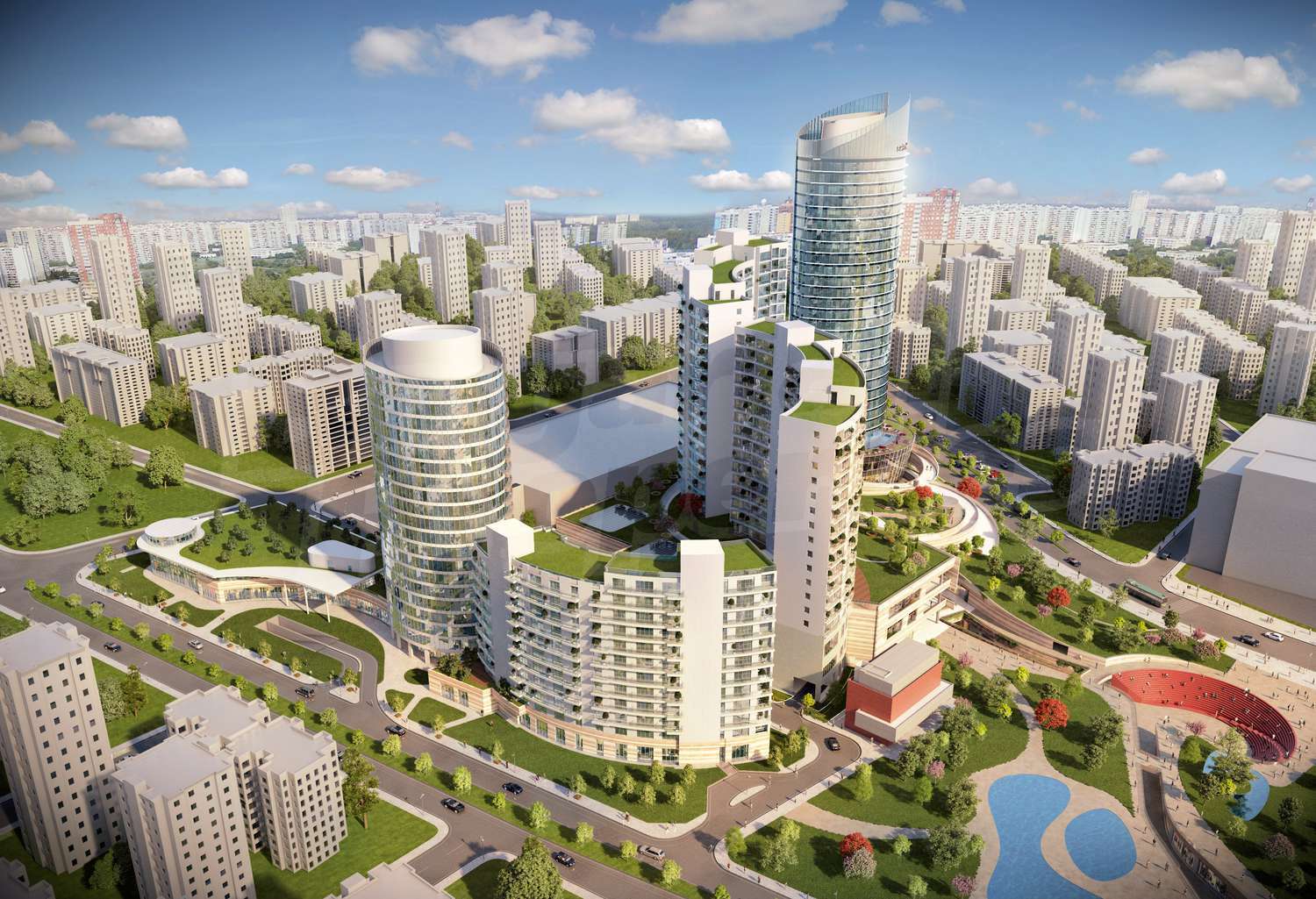 Апартаменты (различные типы), Квартиры-студии, Двухкомнатные квартиры, Трёхкомнатные квартиры, Четырехкомнатные квартиры, Многокомнатные квартиры, Пентхаусы в двух уровнях, Пентхаусы