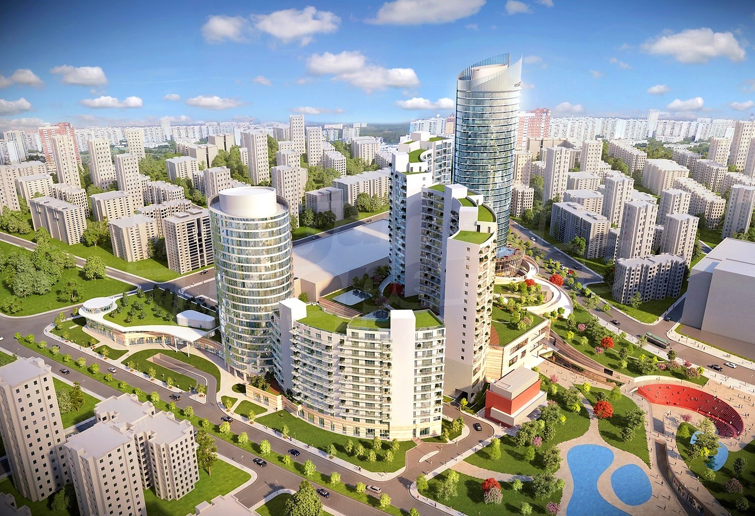 Апартаменты (различные типы), Квартиры-студии, Двухкомнатные квартиры, Трёхкомнатные квартиры, Четырехкомнатные квартиры, Многокомнатные квартиры, Пентхаусы в двух уровнях, Пентхаусы