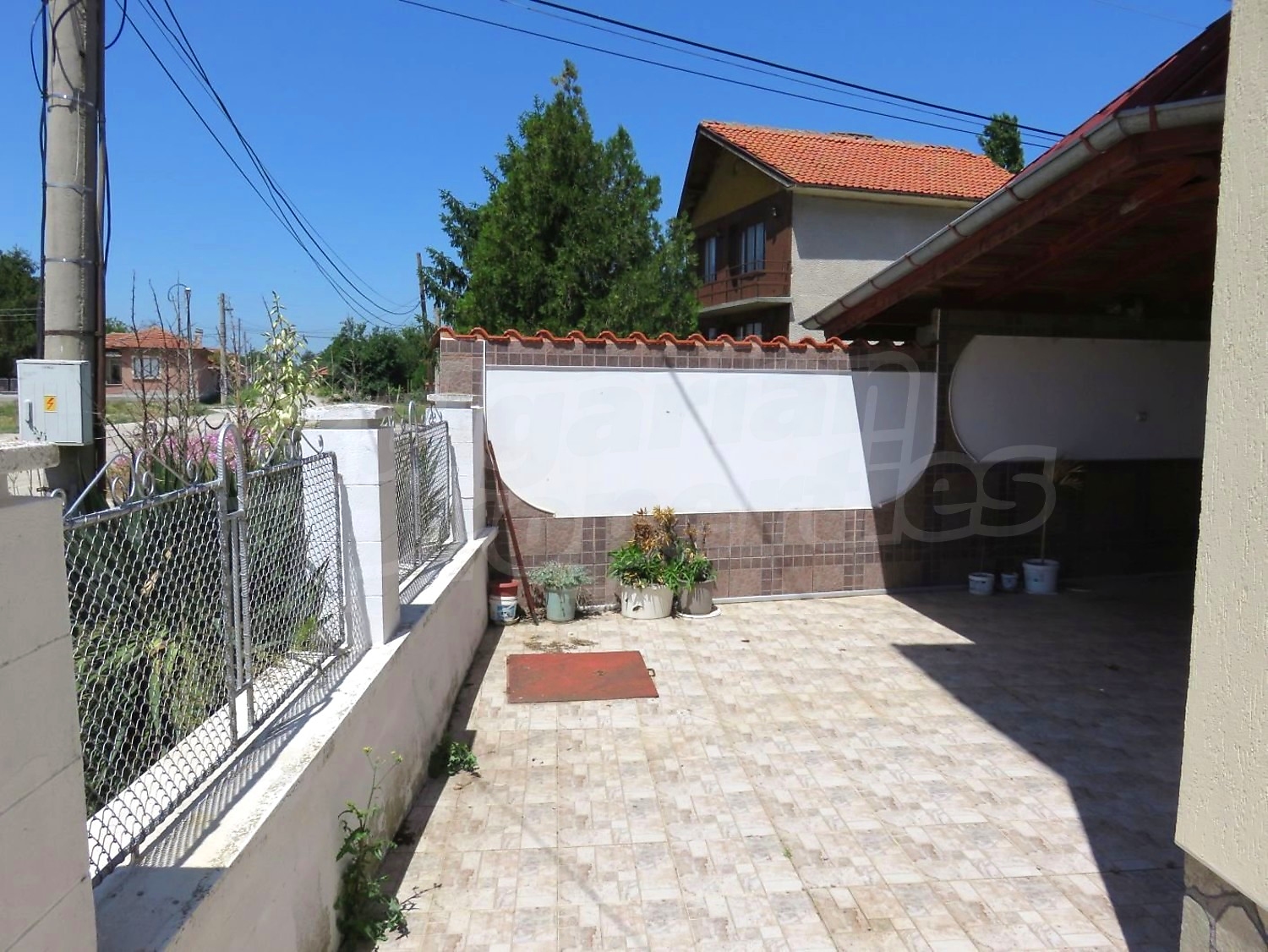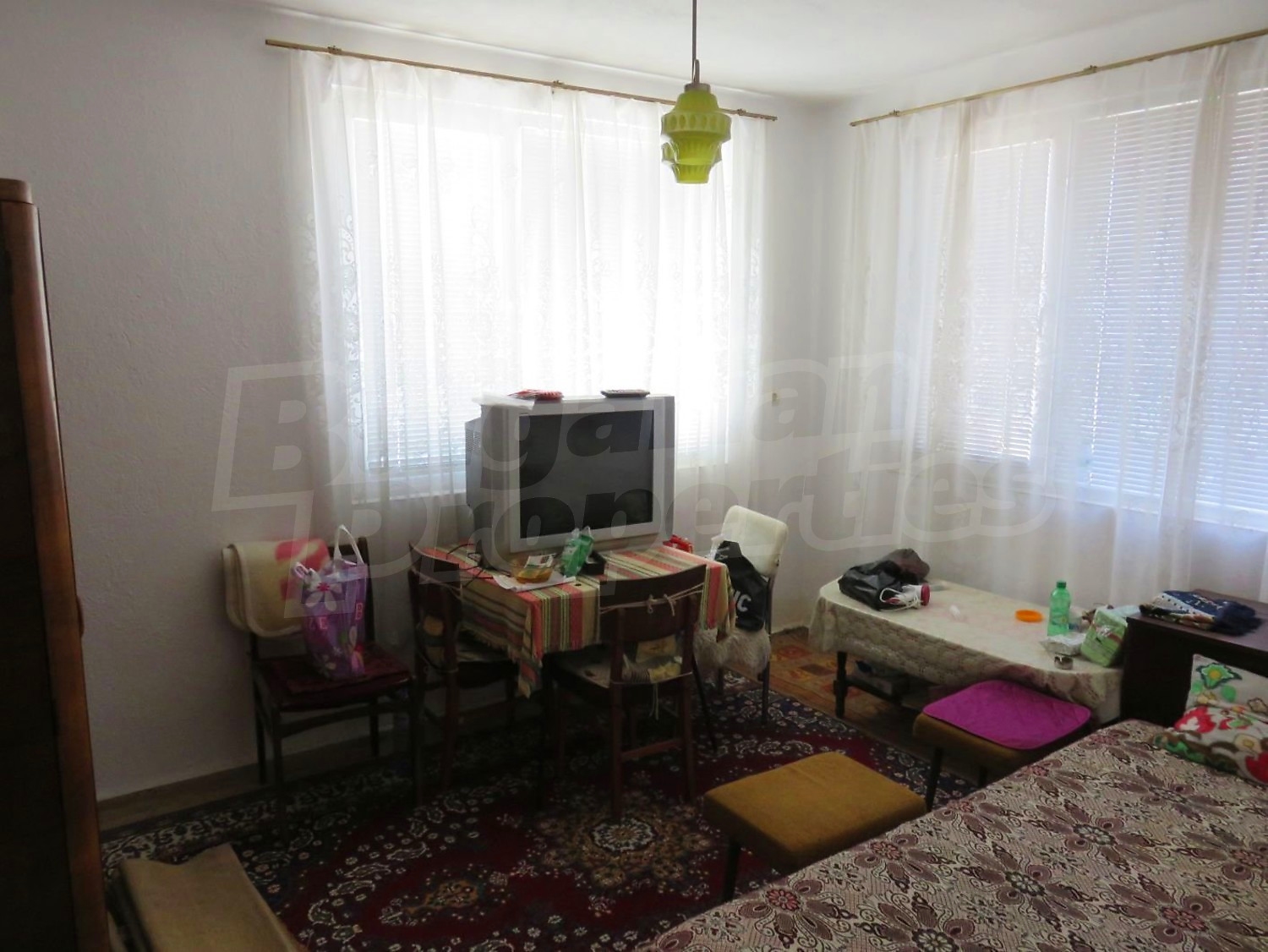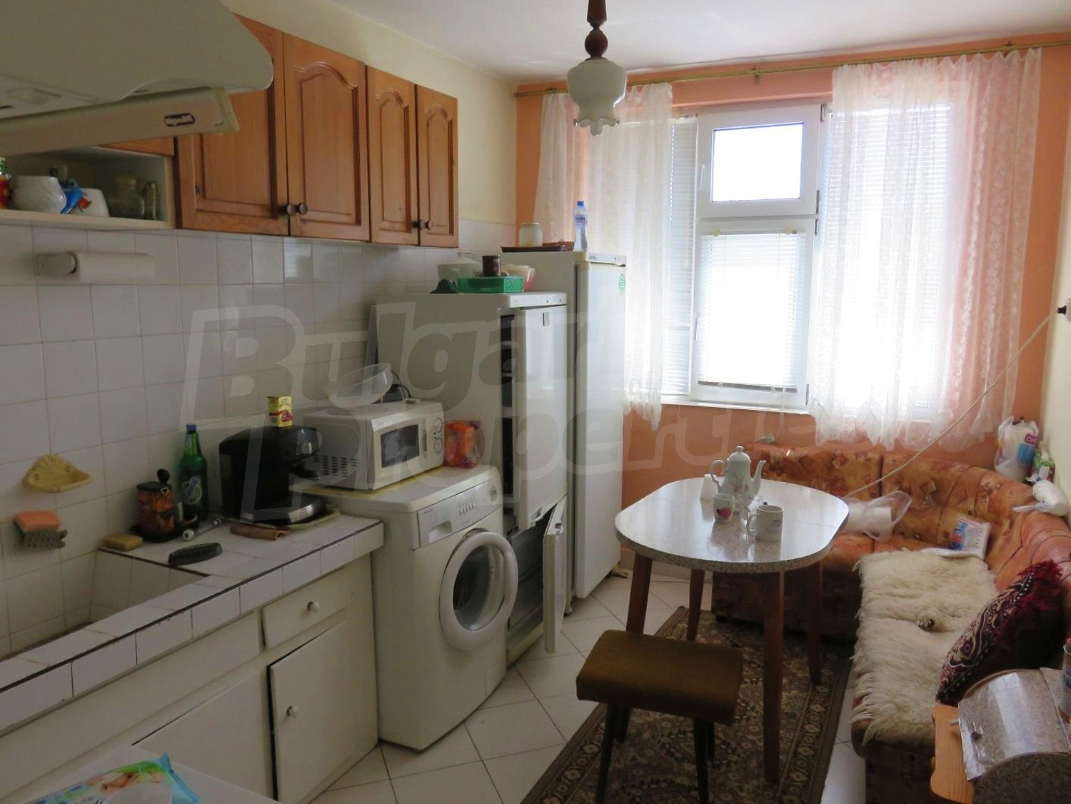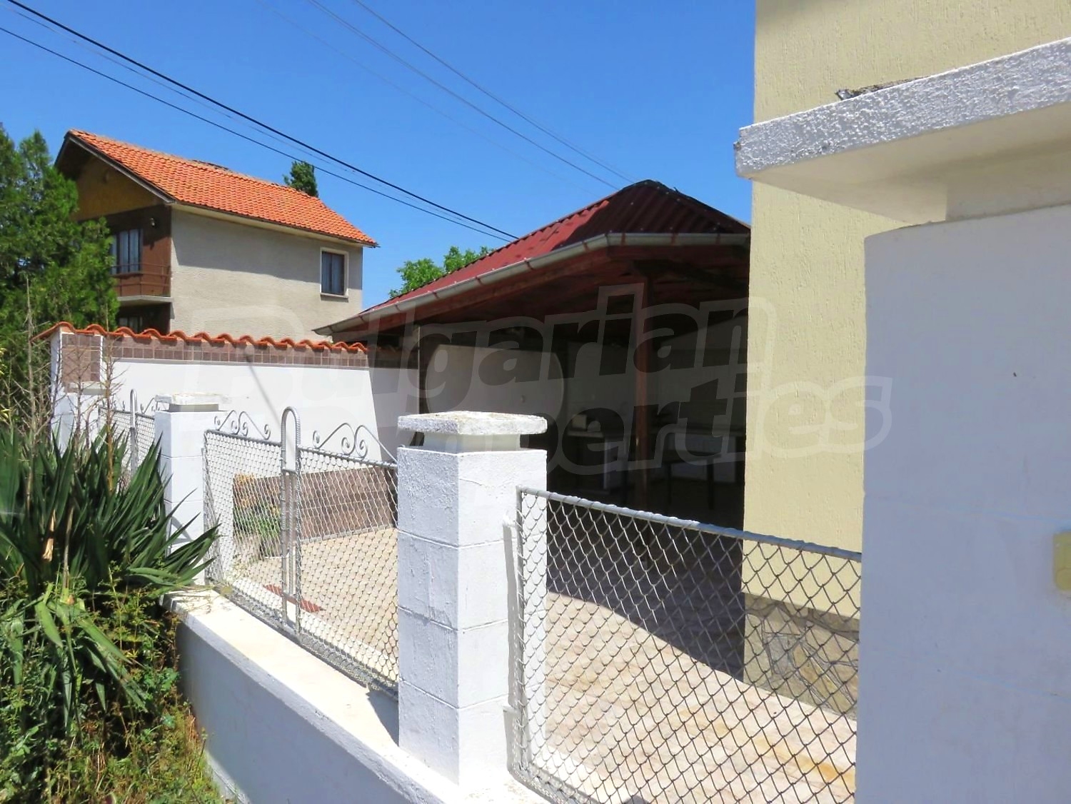 Дом площадью 140 м2. Отопление кондиционером. Обеспечено кондиционирование следующего типа: стандартные кондиционеры. Внешняя изоляция, ковровый настил, межкомнатные двери, окна пвх, стены покрашенные латексной краской и терракотовый пол имеются в предлагаемой недвижимости. Недвижимость включает следующую мебель и оснащение: бойлер электрический, вытяжка, духовка, кондиционер, мебель, оборудованная ванная комната, стиральная машина, телевизор и холодильник. Из основных коммуникаций обеспечены электричество, центральное водоснабжение и центральная канализация. Веранда, внутренний туалет, внутренняя ванная, гараж, терраса, заасфальтированная дорога и кабельное телевидение имеются в наличии среди прочих указанных характеристик предлагаемого объекта, что обеспечит дополнительный комфорт для пользования. Виды на внутренний двор открываются с недвижимости, раскрывая часть красот живописной Болгарии.