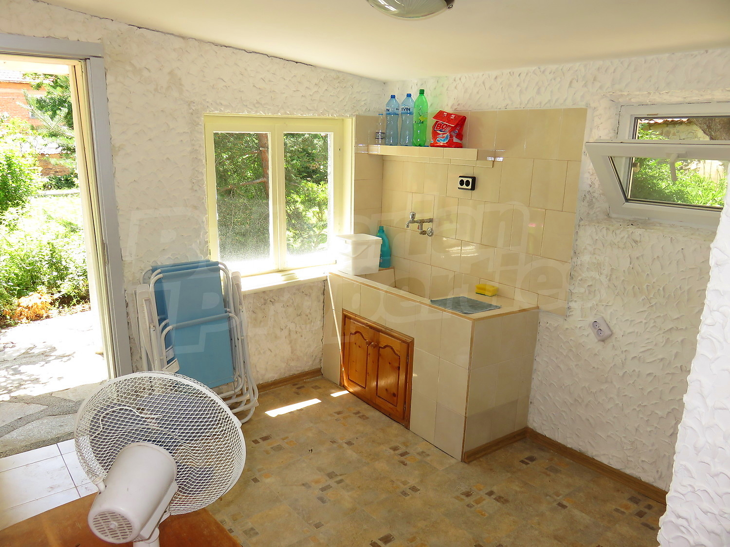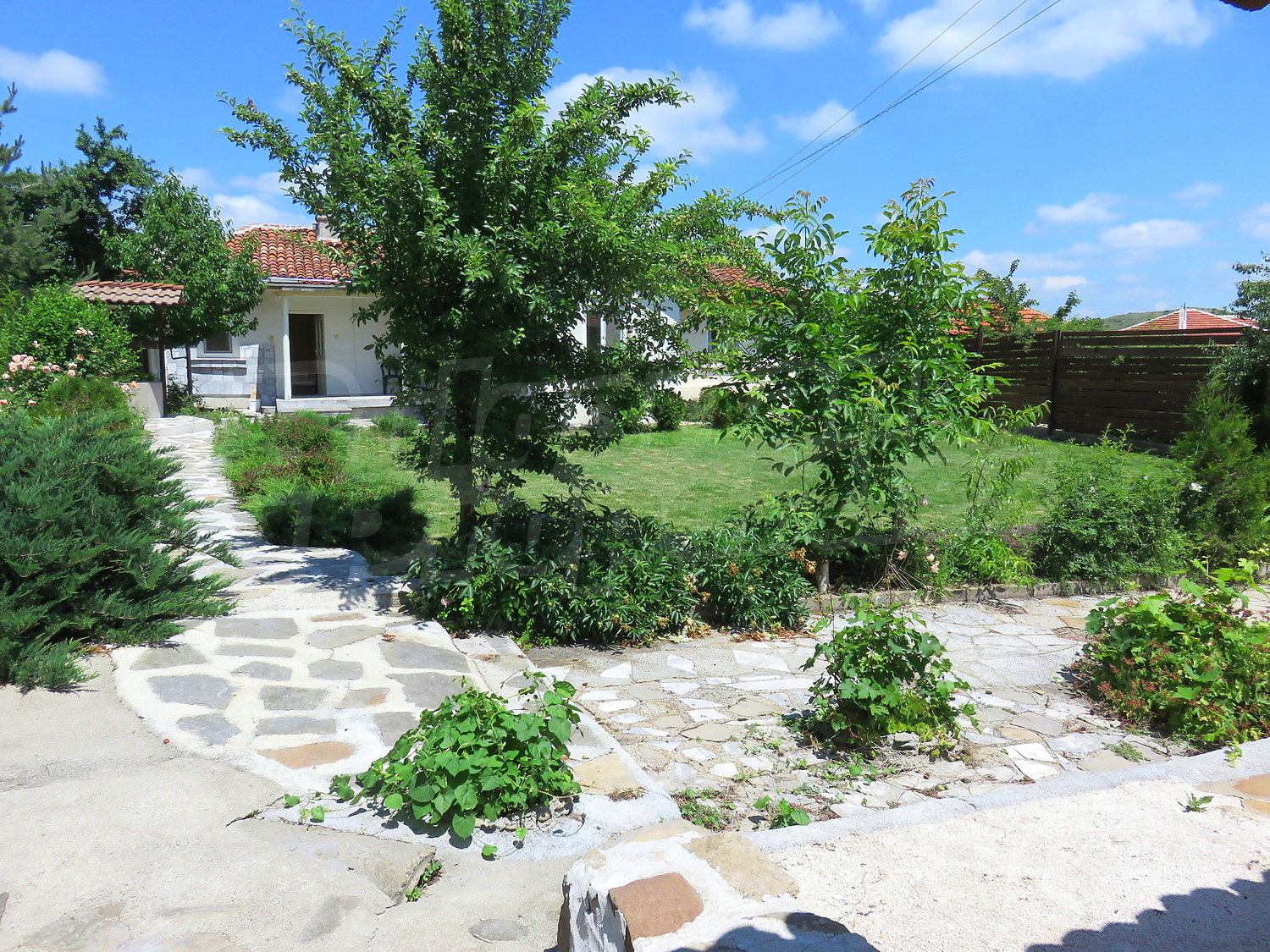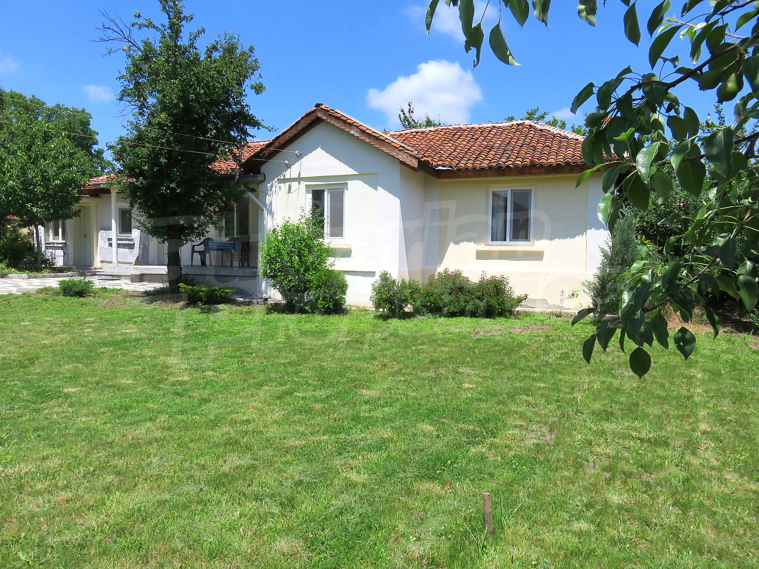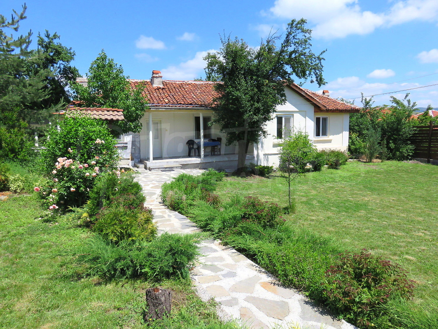 Дом площадью 90 кв.м. Окна пвх, покрашенные стены и терракотовый пол имеются в предлагаемой недвижимости. Недвижимость включает следующую мебель и оборудование: встроенная кухня и оборудованная ванная комната. Из основных коммуникаций обеспечены электричество, вода и центральная канализация. Ванная комната с туалетом, гараж и заасфальтированная дорога имеются в наличии среди прочих отличительных характеристик предлагаемого объекта, что обеспечит дополнительные удобства для пользования. Виды на горы открываются с недвижимости, раскрывая часть красот живописной Болгарии.