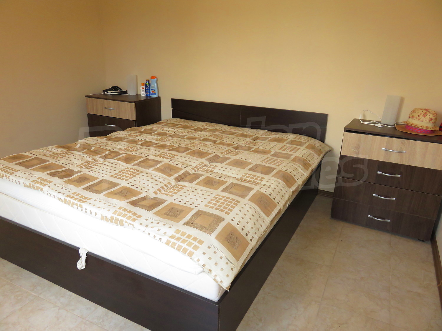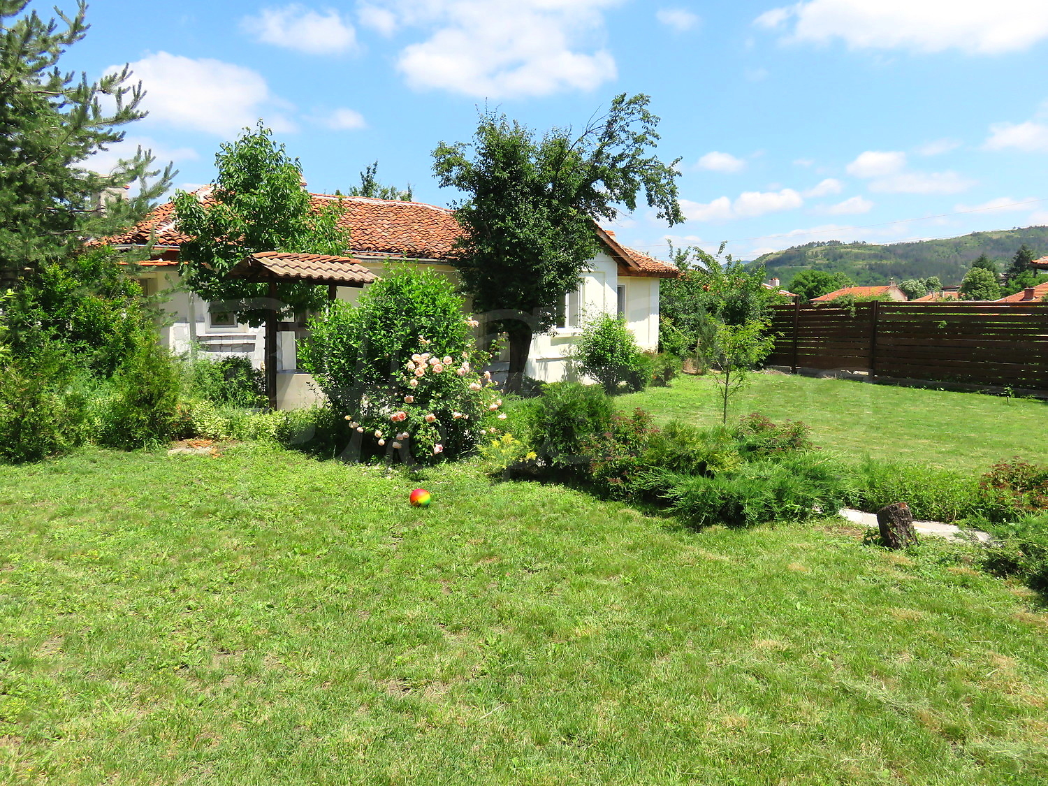 Дом площадью 90 кв.м. Окна пвх, покрашенные стены и терракотовый пол имеются в предлагаемой недвижимости. Недвижимость включает следующую мебель и оборудование: встроенная кухня и оборудованная ванная комната. Из основных коммуникаций обеспечены электричество, вода и центральная канализация. Ванная комната с туалетом, гараж и заасфальтированная дорога имеются в наличии среди прочих отличительных характеристик предлагаемого объекта, что обеспечит дополнительные удобства для пользования. Виды на горы открываются с недвижимости, раскрывая часть красот живописной Болгарии.