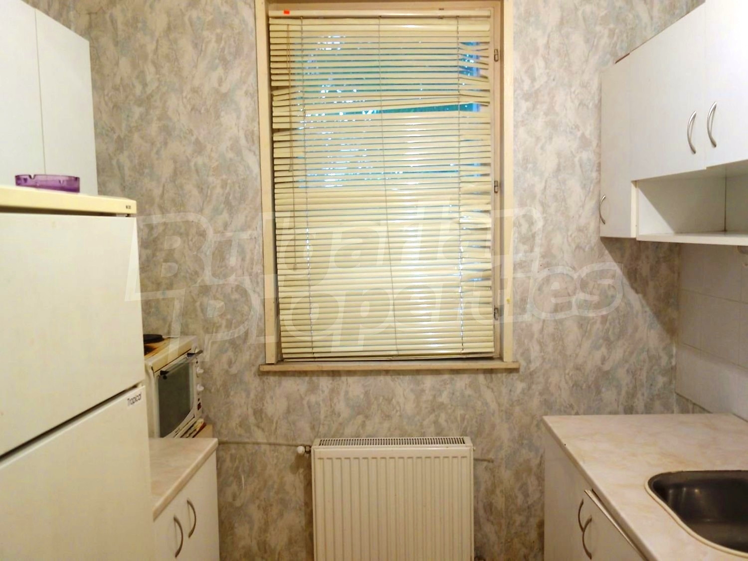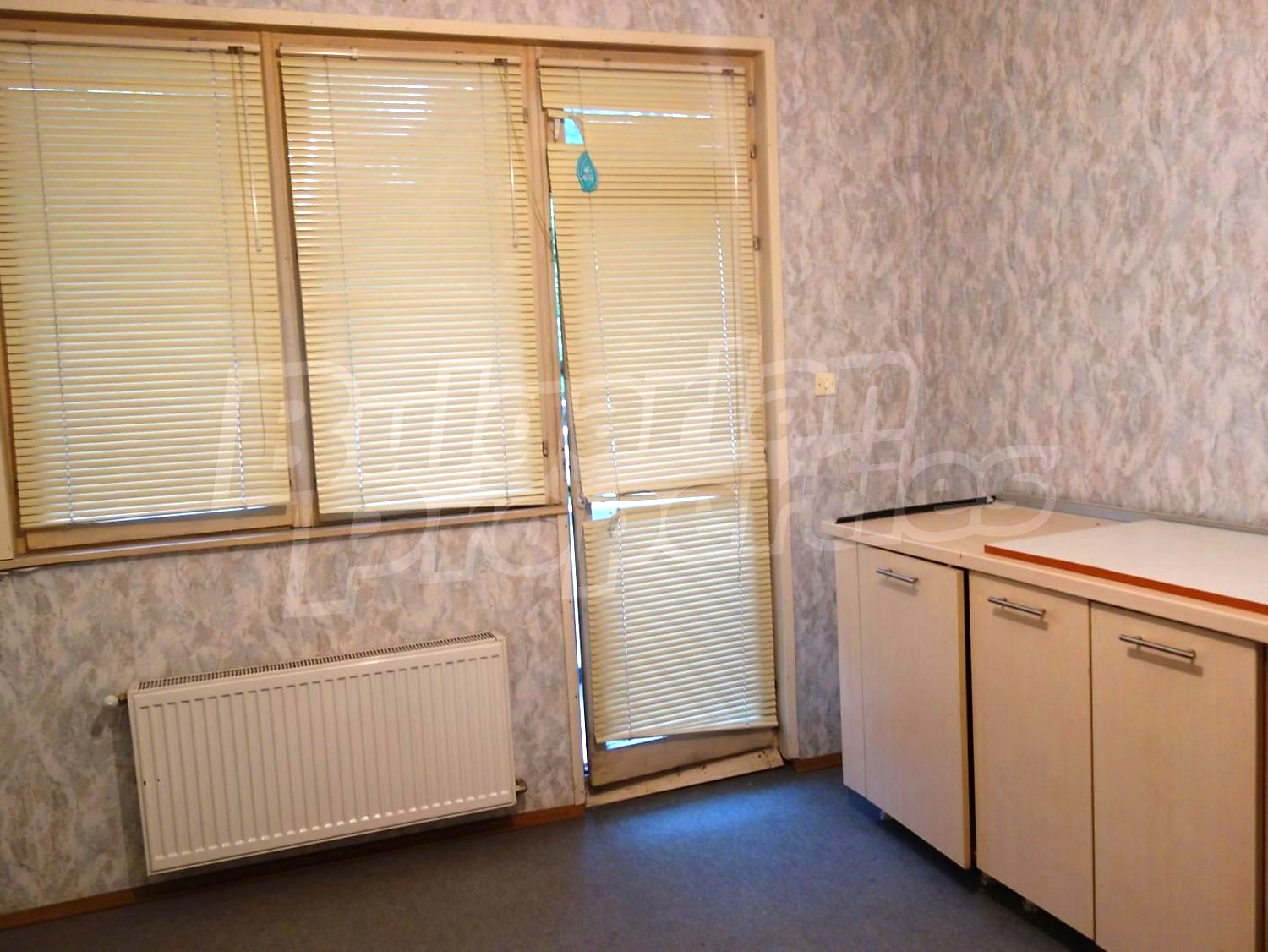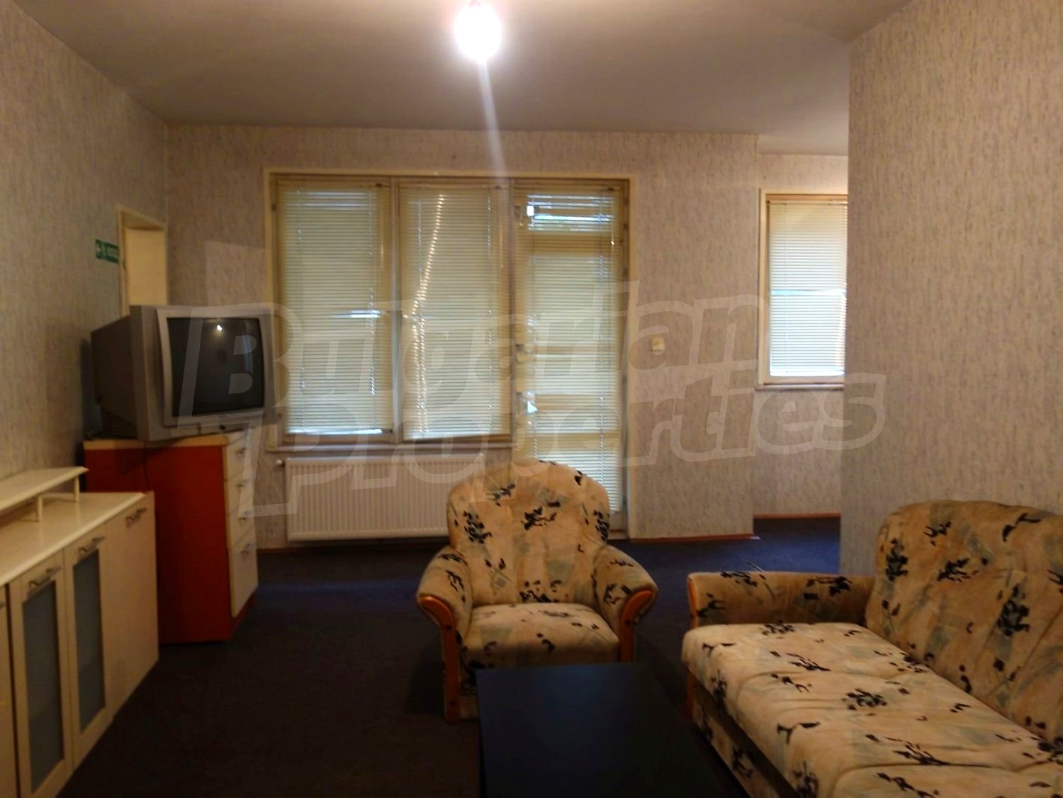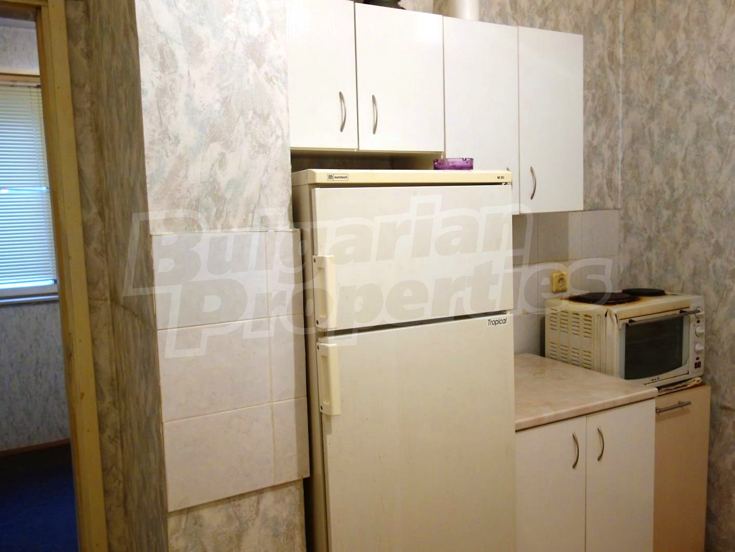 Трехкомнатная квартира площадью 98.14 кв. метров. Предлагаемая недвижимость построена в 1995. Отопление на электрических радиаторах и центральное отопление. Деревянные оконные рамы, ковровый настил, линолеумный пол, межкомнатные двери и обои на стенах имеются в предлагаемой недвижимости. Недвижимость включает следующую меблировку и оборудование: бойлер электрический, духовка, меблировку, оборудованная ванная комната, стиральная машина, телевизор и холодильник. Из основных коммуникаций обеспечены электричество, вода и центральная канализация. Балконы, парковка вне дороги, подвал, стоянка, чердачное помещение, заасфальтированная дорога, интернет и кабельное телевидение имеются в наличии среди прочих отличительных характеристик предлагаемого объекта, что обеспечит дополнительные удобства для пользования. Виды на населенный пункт открываются с недвижимости, раскрывая часть красот живописной Болгарии.