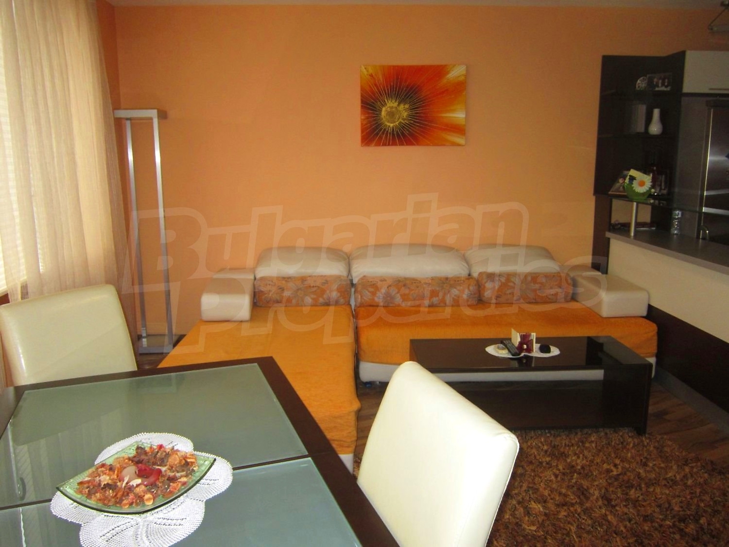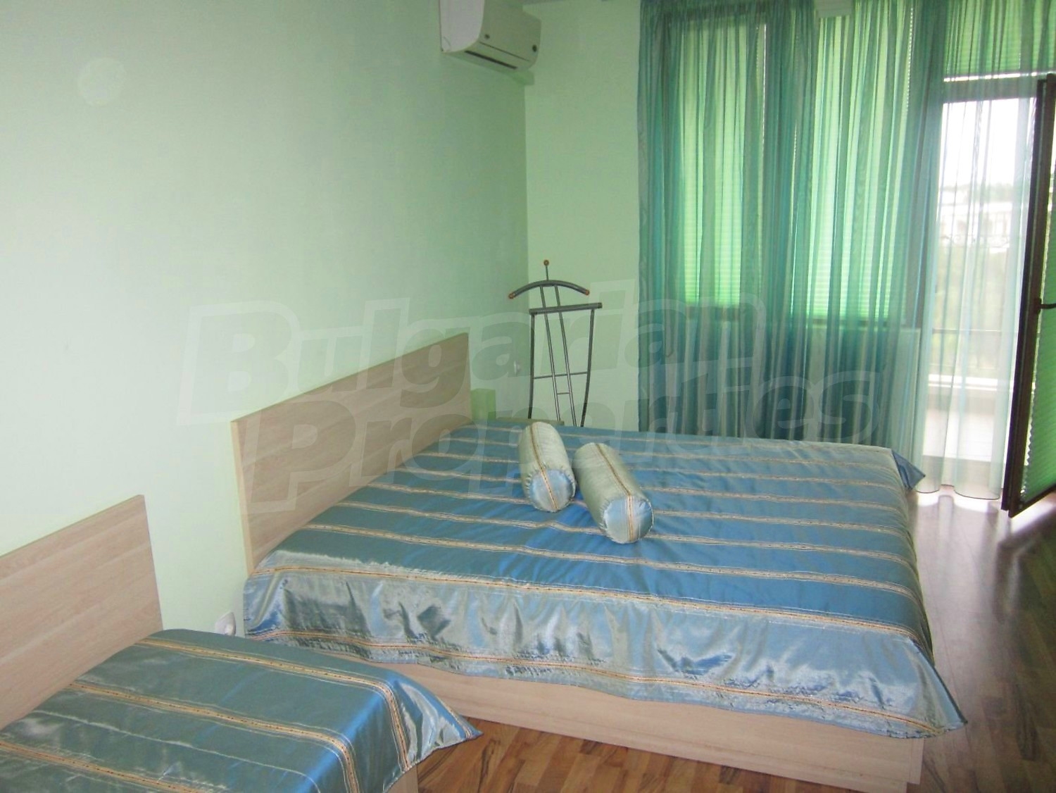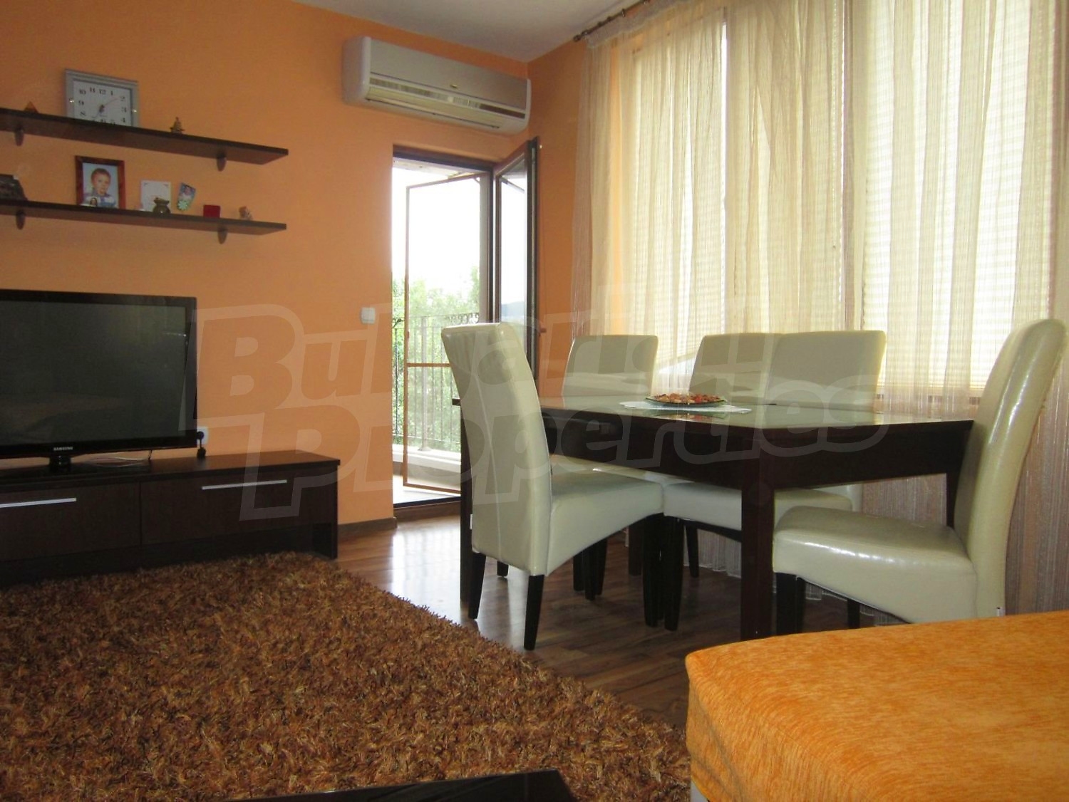 Двухкомнатная квартира площадью 65 кв. метров. Предлагаемая недвижимость построена в 2010. Отопление кондиционером. Обеспечено кондиционирование следующего типа: стандартные кондиционеры. Керамогранитный пол, ламинированный пол, межкомнатные двери, окна пвх и стены покрашенные латексной краской имеются в предлагаемой недвижимости. Недвижимость включает следующую мебель и оснащение: бойлер электрический, вытяжка, духовка, душевая, кондиционер, мебель, оборудованная ванная комната, телевизор и холодильник. Из основных коммуникаций обеспечены электричество, вода, центральное водоснабжение и центральная канализация. Парковка вне дороги, парковочное место, терраса, заасфальтированная дорога, интернет, кабельное телевидение и система охранной сигнализации имеются в наличии среди прочих обозначенных характеристик предлагаемого объекта, что обеспечит дополнительные удобства для пользования. Виды на лес и виды на море открываются с недвижимости, раскрывая часть красот живописной Болгарии.