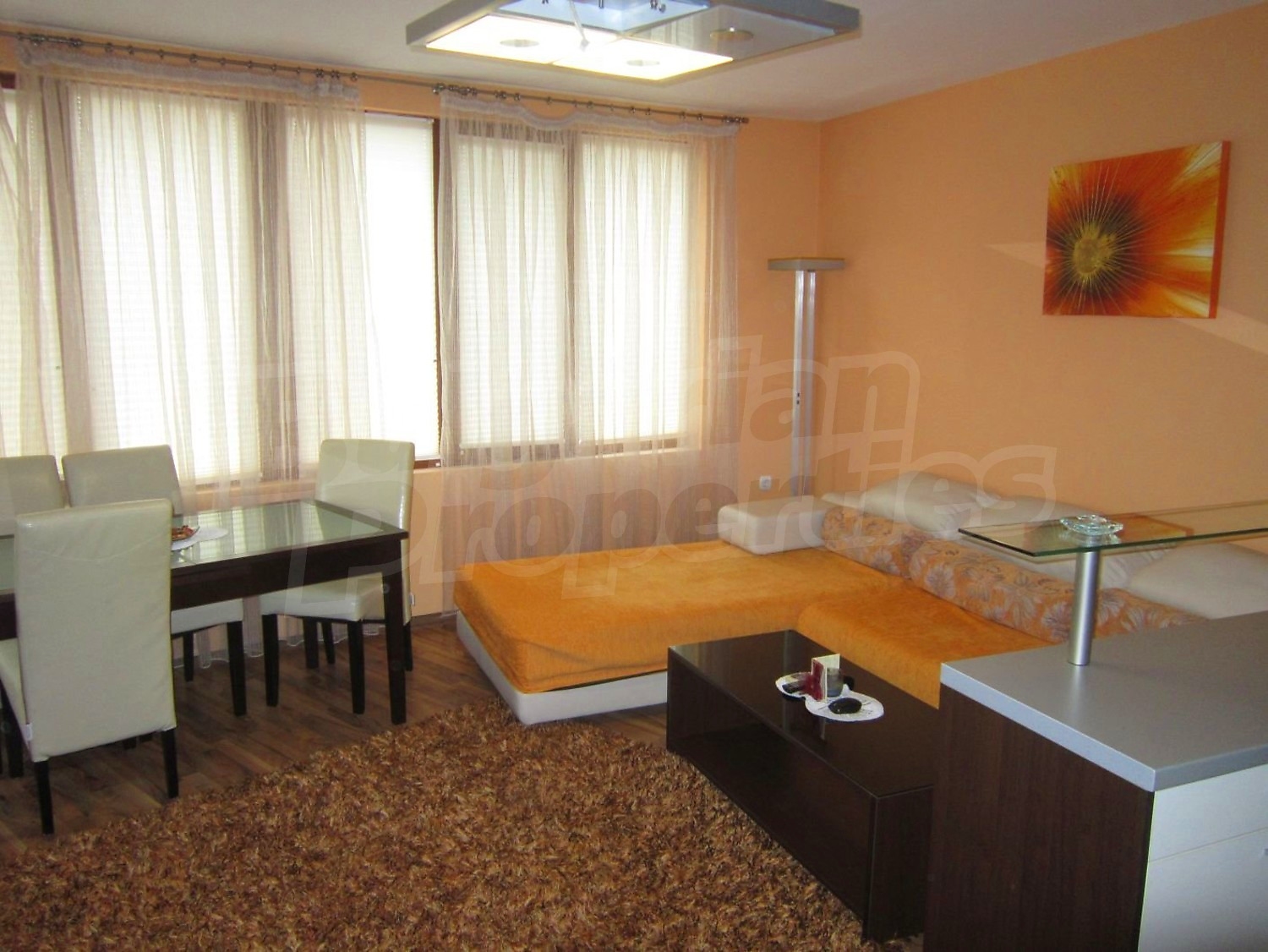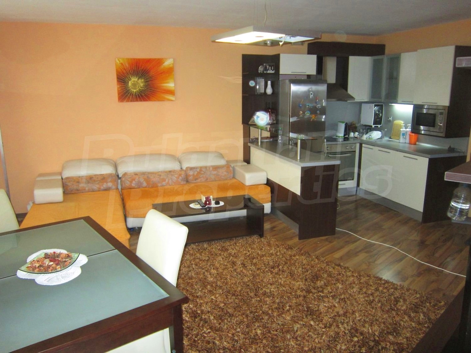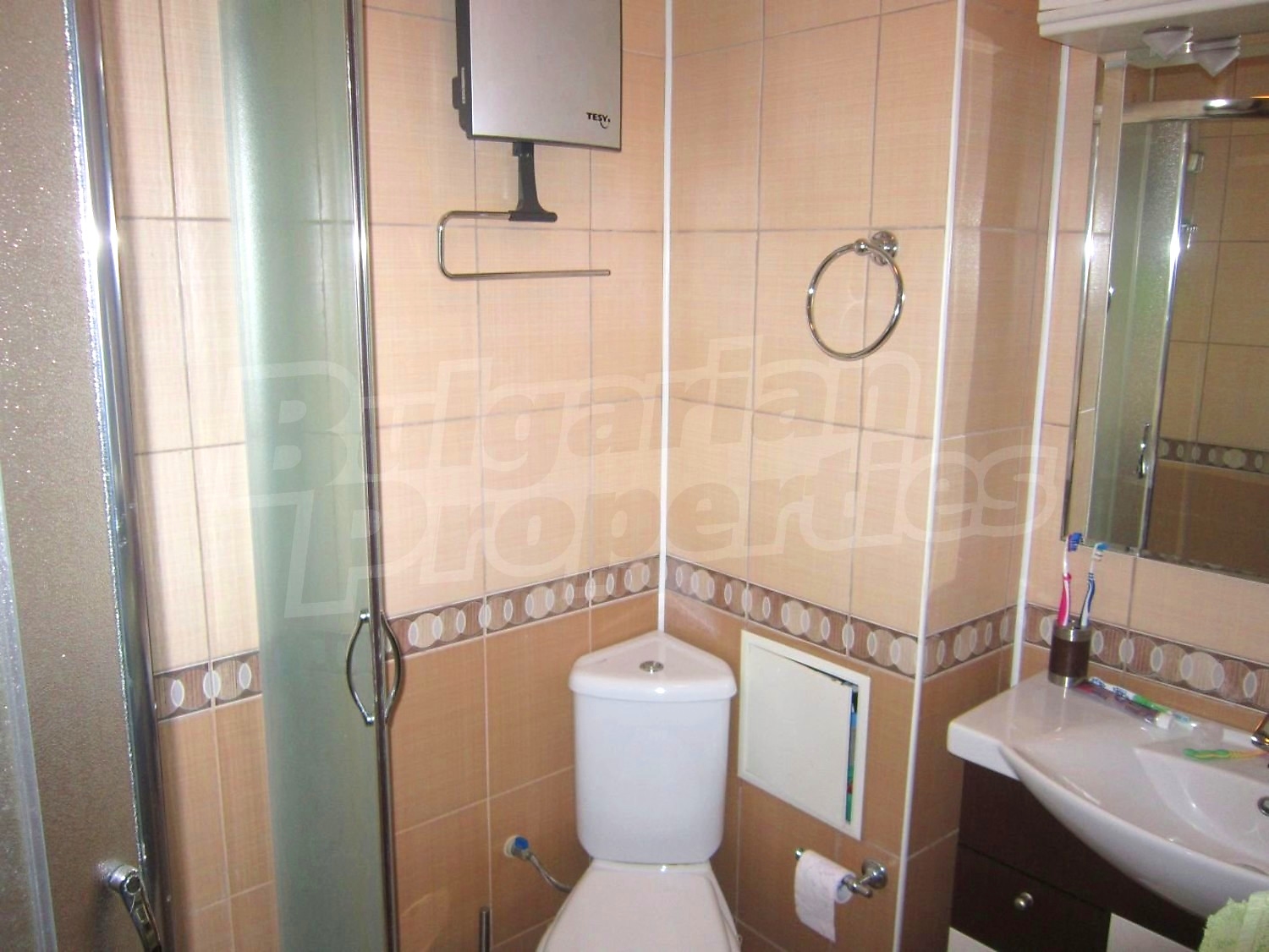 Двухкомнатная квартира площадью 65 кв. метров. Предлагаемая недвижимость построена в 2010. Отопление кондиционером. Обеспечено кондиционирование следующего типа: стандартные кондиционеры. Керамогранитный пол, ламинированный пол, межкомнатные двери, окна пвх и стены покрашенные латексной краской имеются в предлагаемой недвижимости. Недвижимость включает следующую мебель и оснащение: бойлер электрический, вытяжка, духовка, душевая, кондиционер, мебель, оборудованная ванная комната, телевизор и холодильник. Из основных коммуникаций обеспечены электричество, вода, центральное водоснабжение и центральная канализация. Парковка вне дороги, парковочное место, терраса, заасфальтированная дорога, интернет, кабельное телевидение и система охранной сигнализации имеются в наличии среди прочих обозначенных характеристик предлагаемого объекта, что обеспечит дополнительные удобства для пользования. Виды на лес и виды на море открываются с недвижимости, раскрывая часть красот живописной Болгарии.