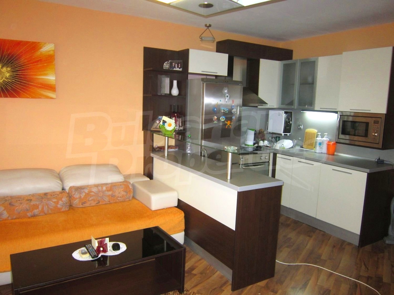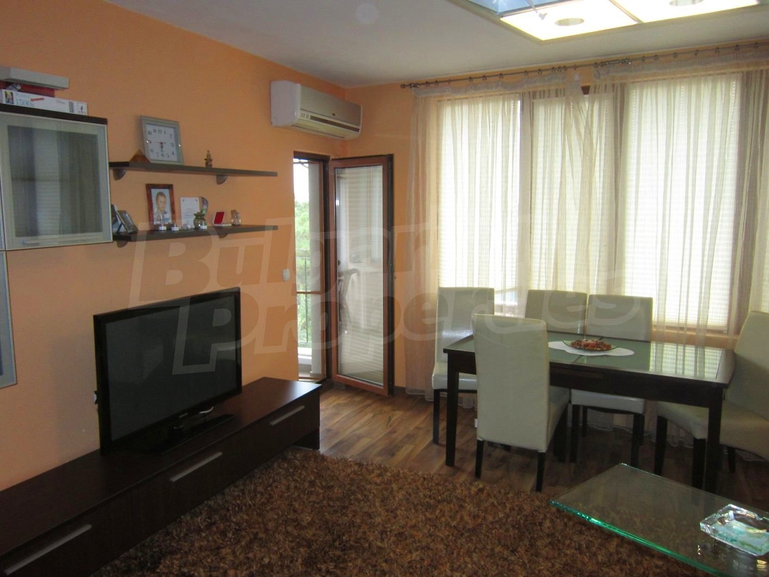 Двухкомнатная квартира площадью 65 кв. метров. Предлагаемая недвижимость построена в 2010. Отопление кондиционером. Обеспечено кондиционирование следующего типа: стандартные кондиционеры. Керамогранитный пол, ламинированный пол, межкомнатные двери, окна пвх и стены покрашенные латексной краской имеются в предлагаемой недвижимости. Недвижимость включает следующую мебель и оснащение: бойлер электрический, вытяжка, духовка, душевая, кондиционер, мебель, оборудованная ванная комната, телевизор и холодильник. Из основных коммуникаций обеспечены электричество, вода, центральное водоснабжение и центральная канализация. Парковка вне дороги, парковочное место, терраса, заасфальтированная дорога, интернет, кабельное телевидение и система охранной сигнализации имеются в наличии среди прочих обозначенных характеристик предлагаемого объекта, что обеспечит дополнительные удобства для пользования. Виды на лес и виды на море открываются с недвижимости, раскрывая часть красот живописной Болгарии.