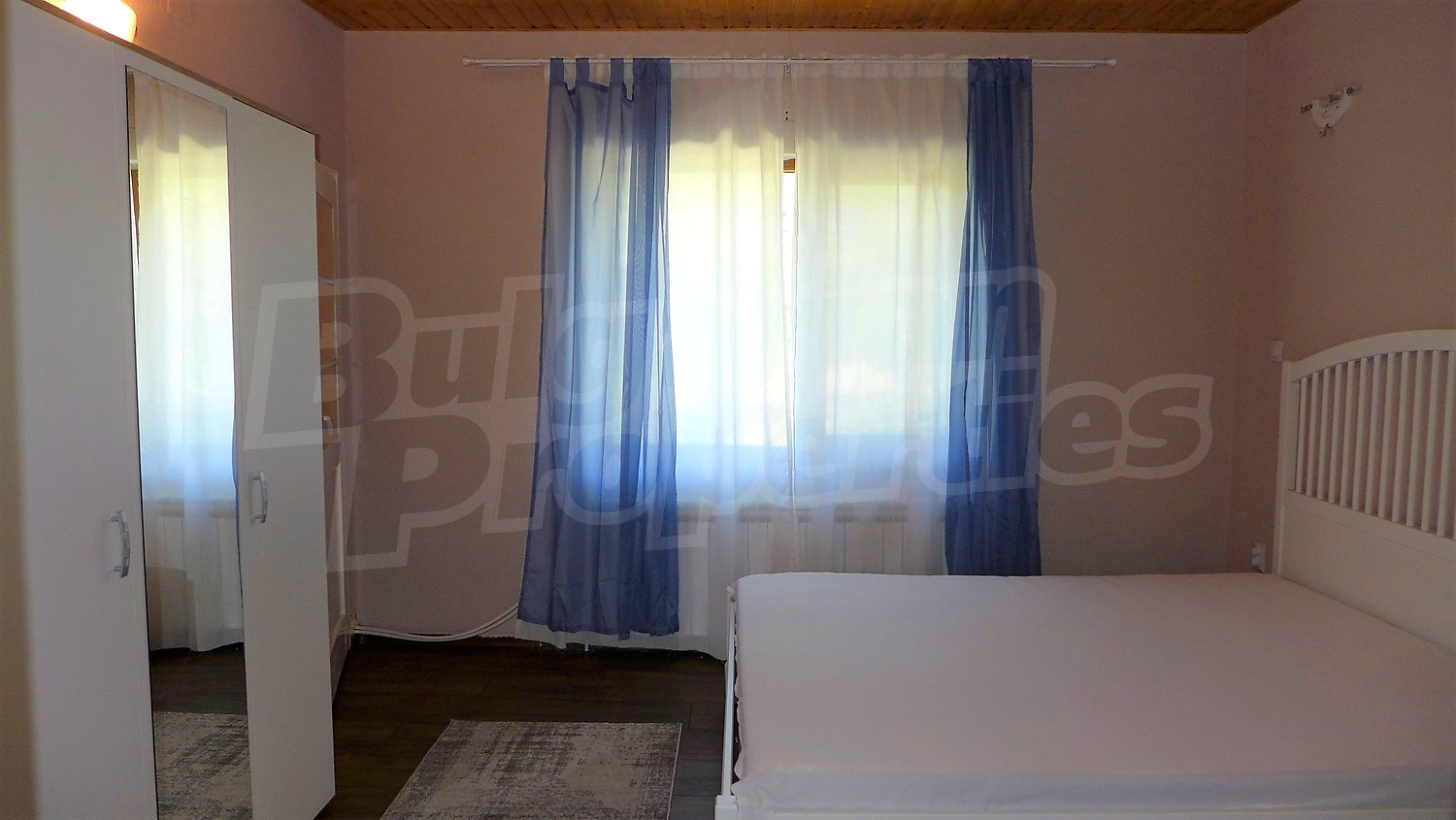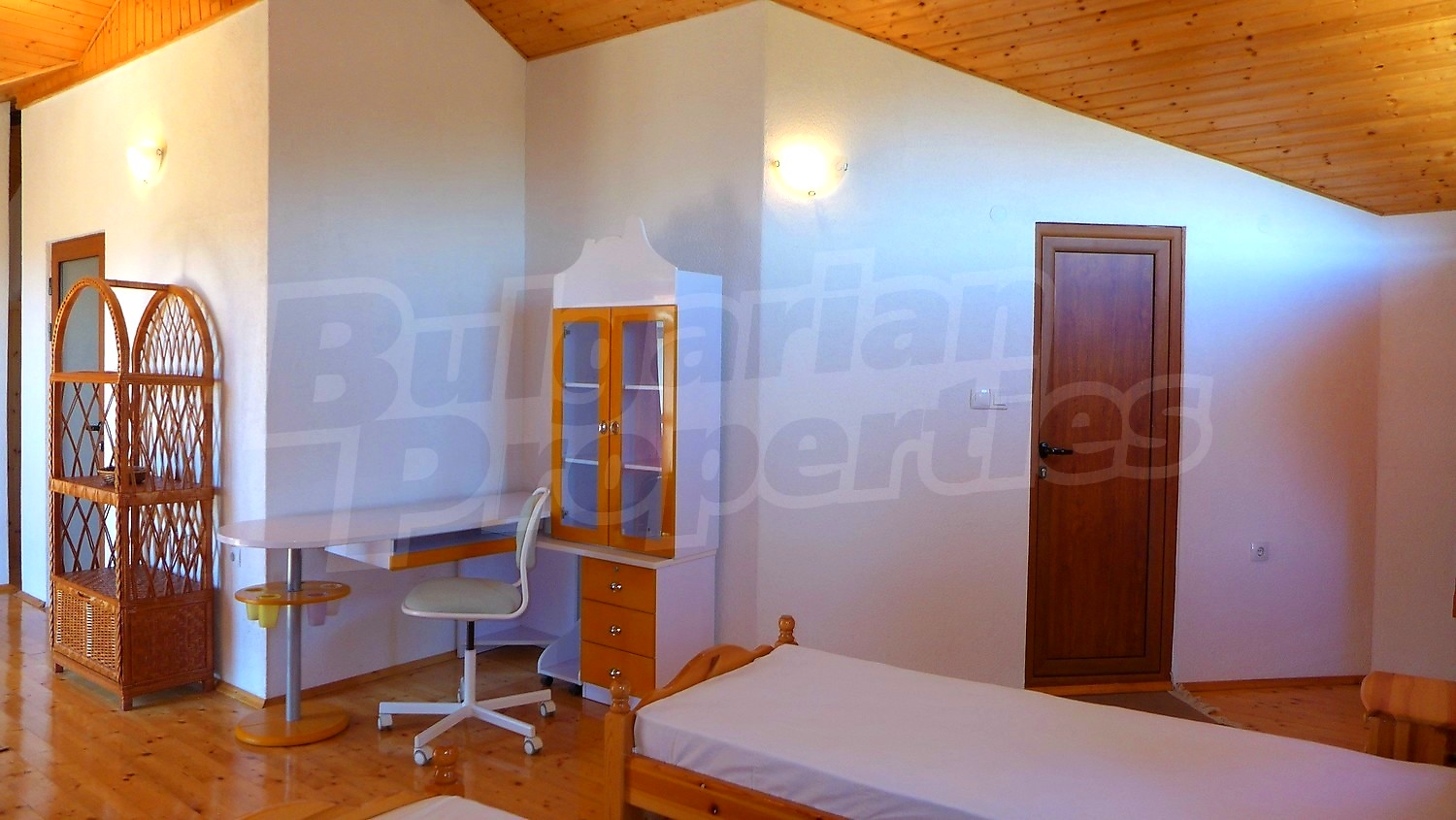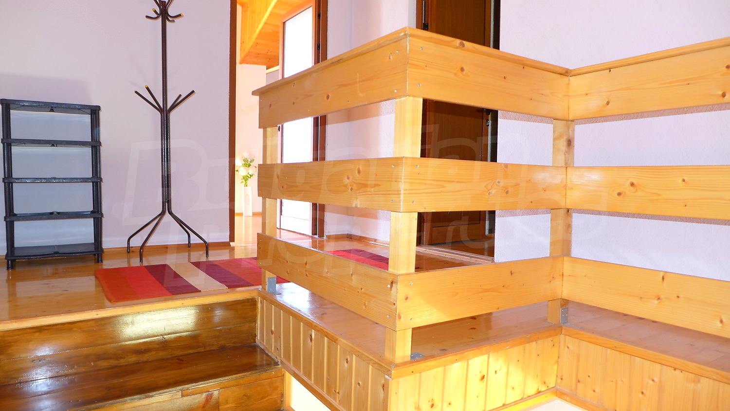 На первом этаже находятся спалня и ванной комнатой, а во втором - большая спальня и балкон.