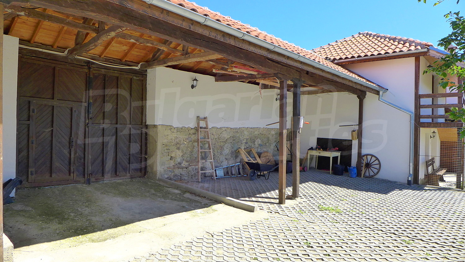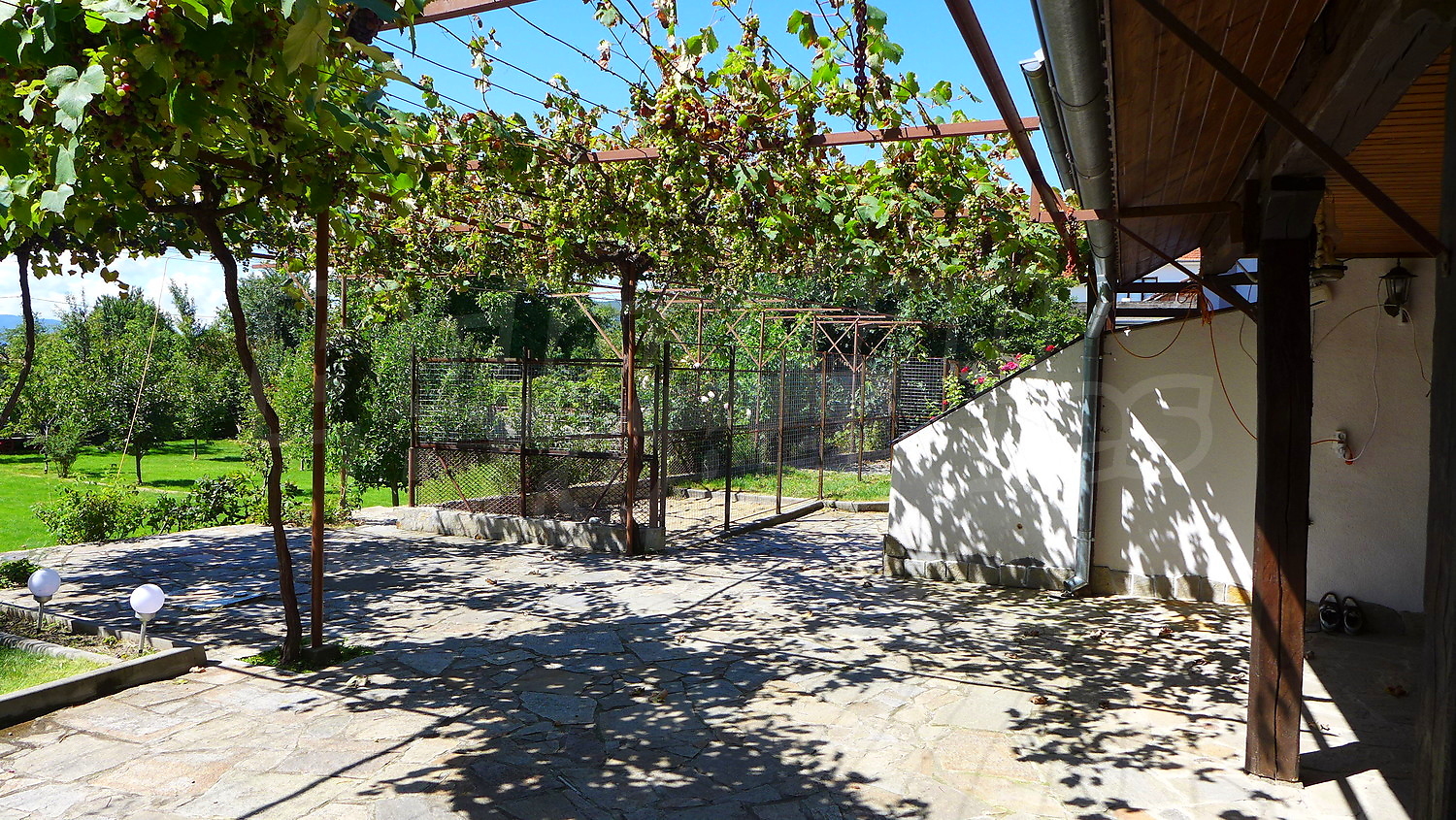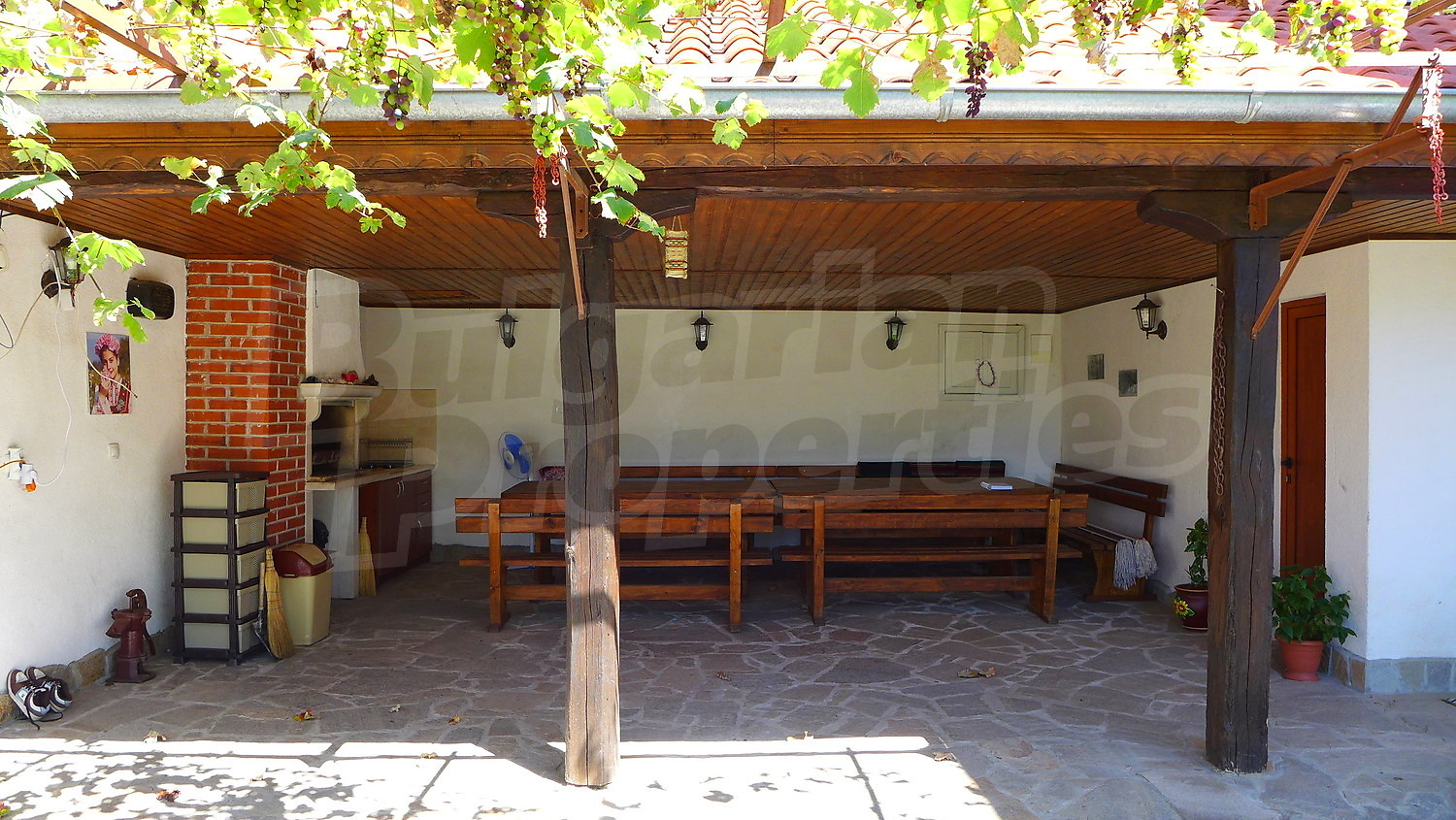 Между двумя домами расположена отдельная летняя площадка для барбекю с площадью 47,07 кв.м. Во дворе тоже есть и навес для автомобилей с площадью 39.47 кв.м.