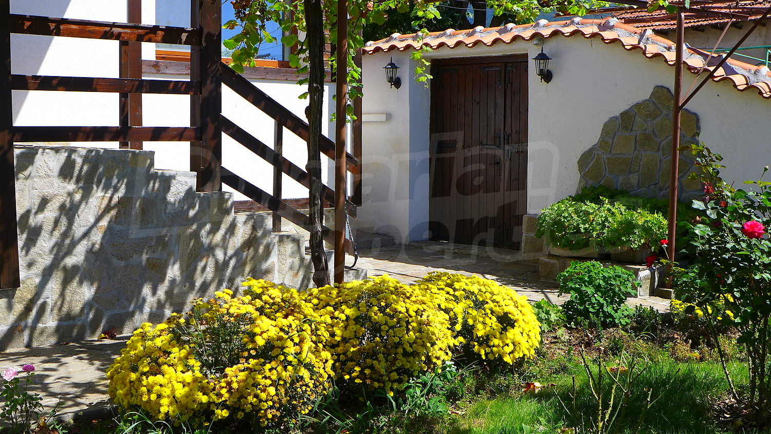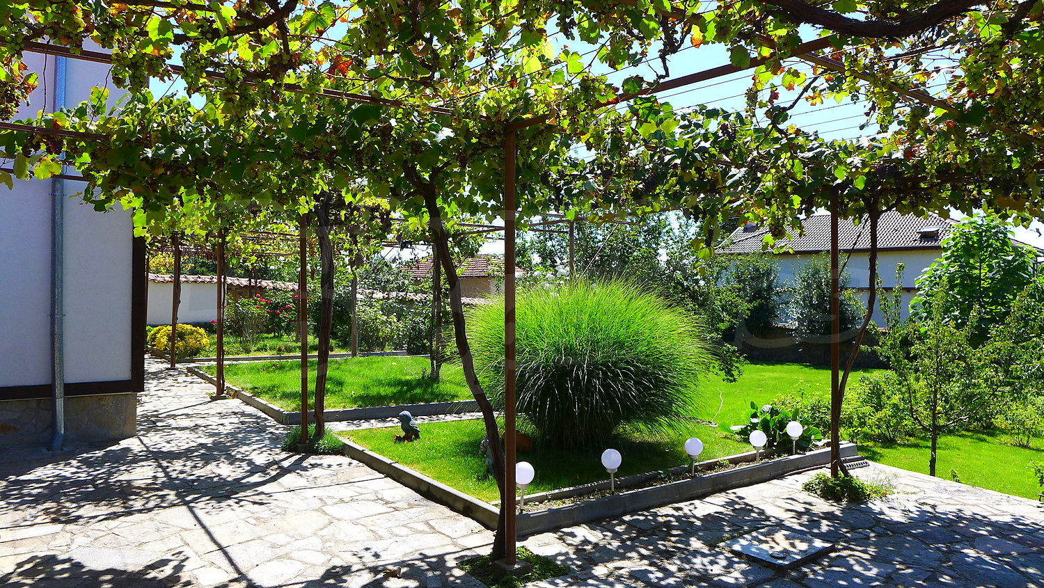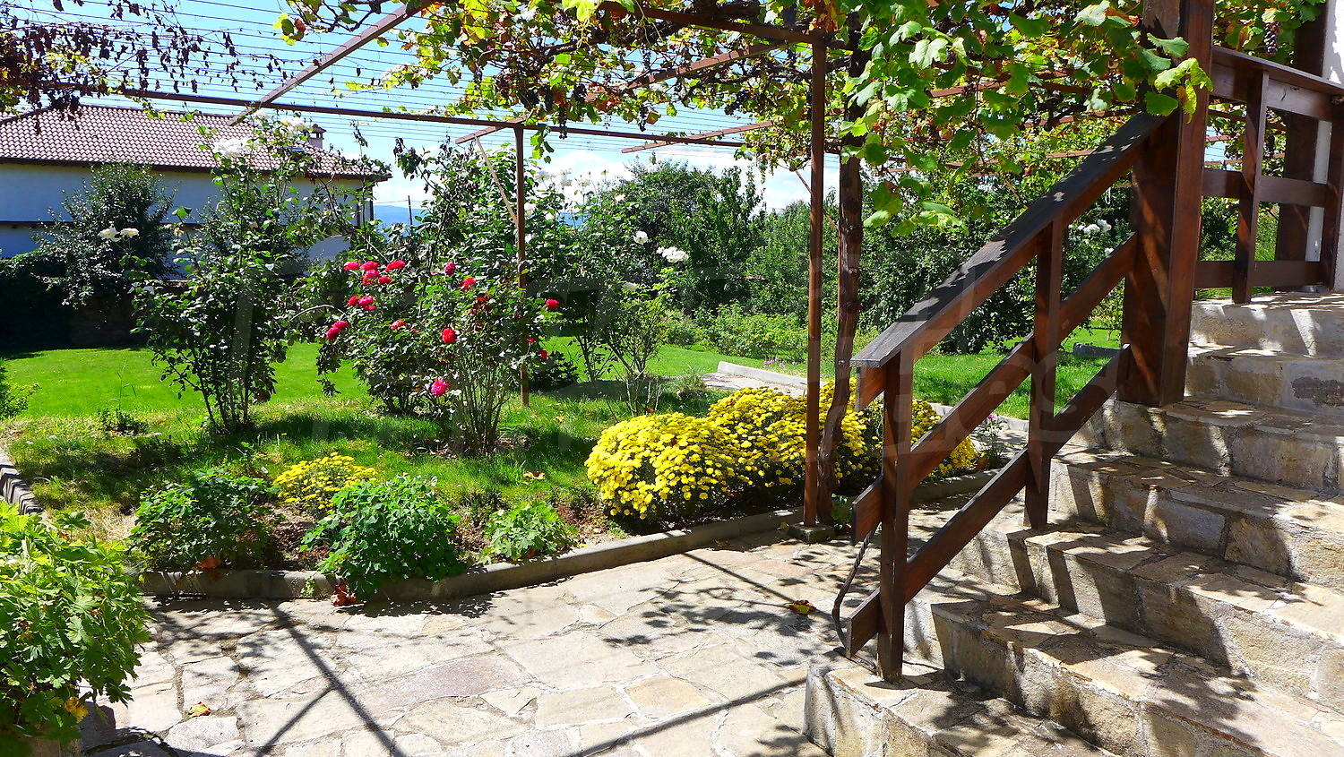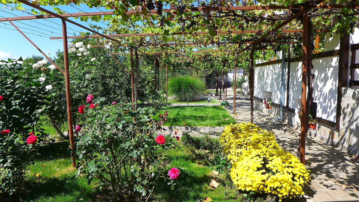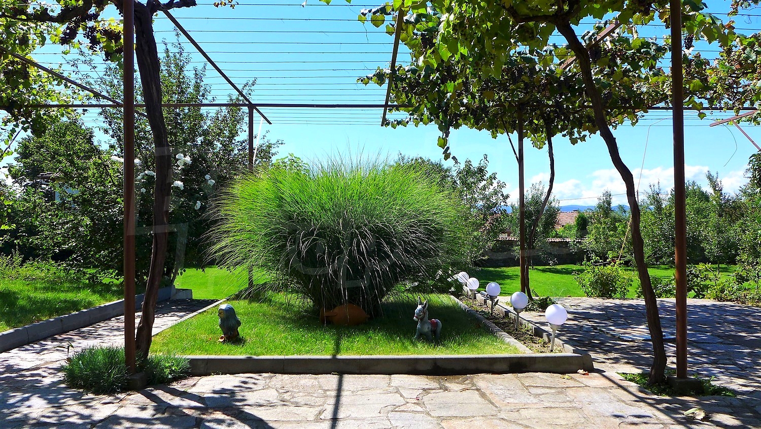 Сад очень хорошо поддерживается. В нем есть посажены фруктовые деревья, цветы, виноград, розы, самшита и райграс. Существует колодец, который помогает для орошения.