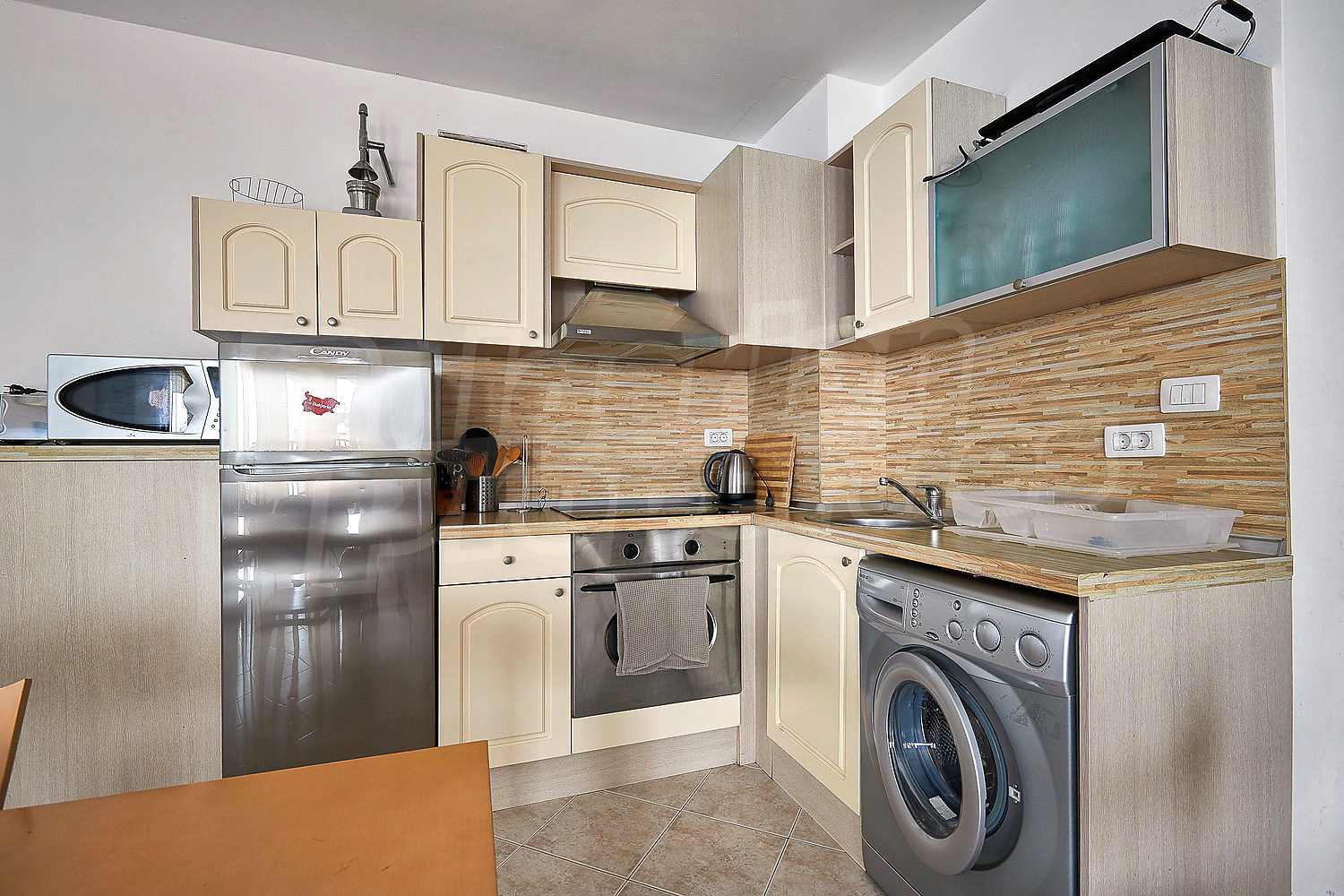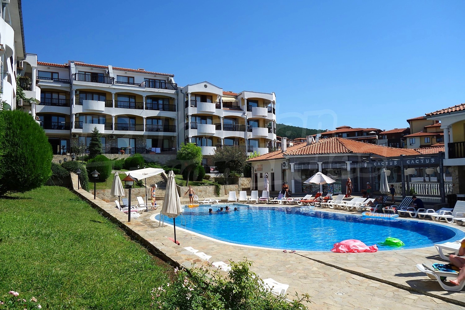 В отеле есть кондиционер, кабельное телевидение и интернет. Ежегодная плата за обслуживание комплекса составляет 9 евро за кв.м.