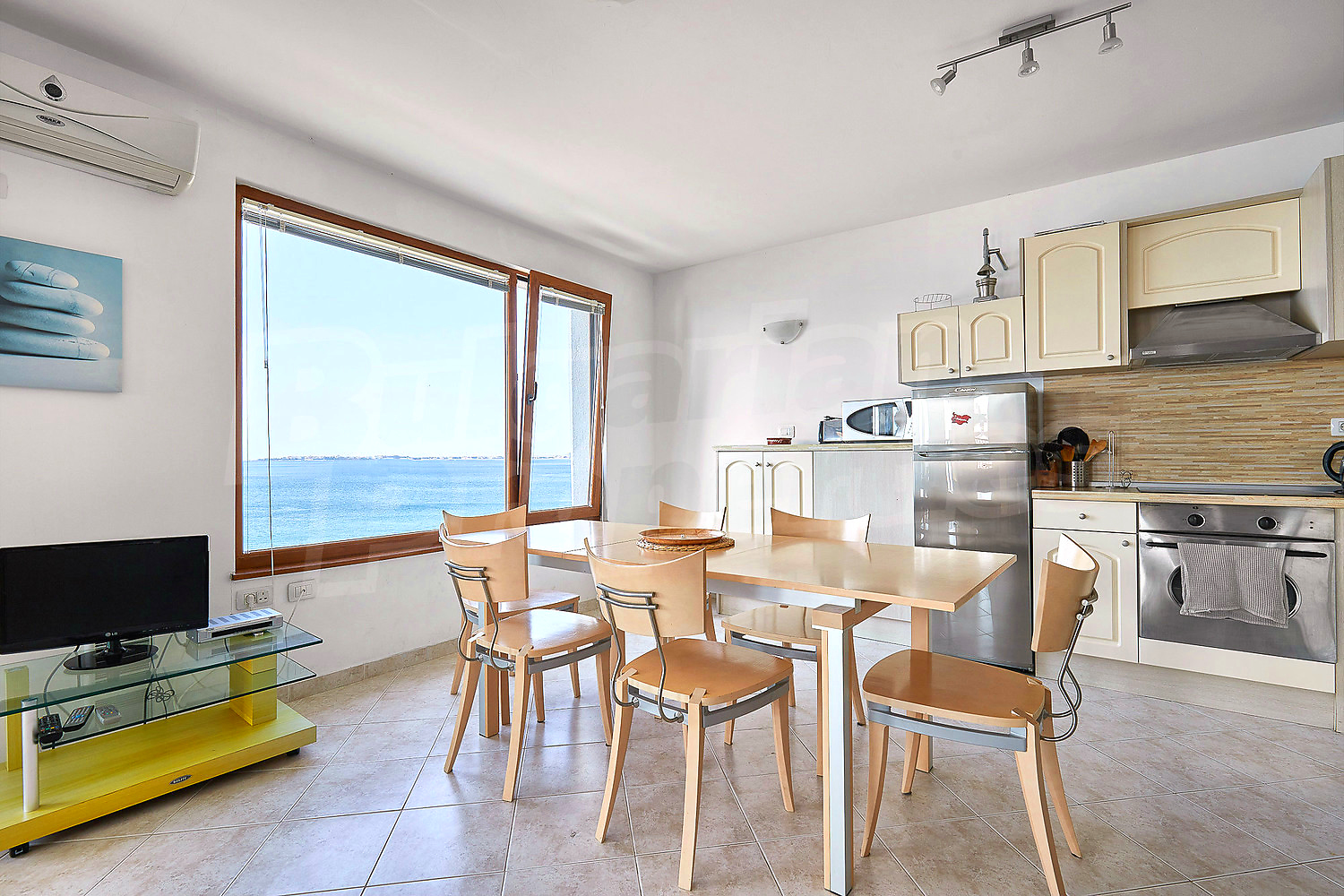 В отеле есть кондиционер, кабельное телевидение и интернет. Ежегодная плата за обслуживание комплекса составляет 9 евро за кв.м.