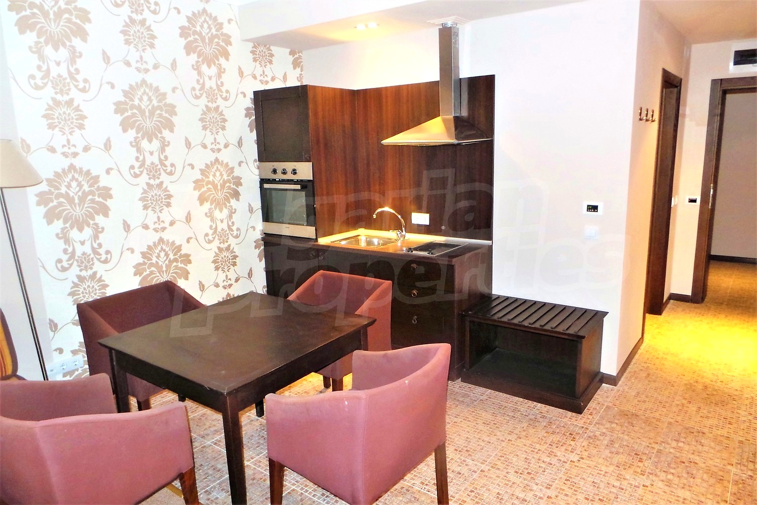 Двухкомнатная квартира площадью 71.32 м2. Предлагаемая недвижимость построена в 2005. Отопление кондиционером. Обеспечено кондиционирование следующего типа: центральная система кондиционеров. Межкомнатные двери, окна пвх, покрашенные стены и терракотовый пол имеются в предлагаемой недвижимости. Недвижимость включает следующую мебель и оснащение: ванна, вытяжка, духовка, кондиционер и оборудованная ванная комната. Из основных коммуникаций обеспечены электричество, центральное водоснабжение и центральная канализация. Ванная комната с туалетом, терраса, бассейн, джакузи, комплекс закрытого типа, консьерж, лифт, общие части с отделкой люкс, сауна, тренажерный зал, интернет и кабельное телевидение имеются в наличии среди прочих характеристик предлагаемого объекта, что обеспечит дополнительный комфорт для пользования. Виды на бассейн открываются с недвижимости, раскрывая часть красот живописной Болгарии.