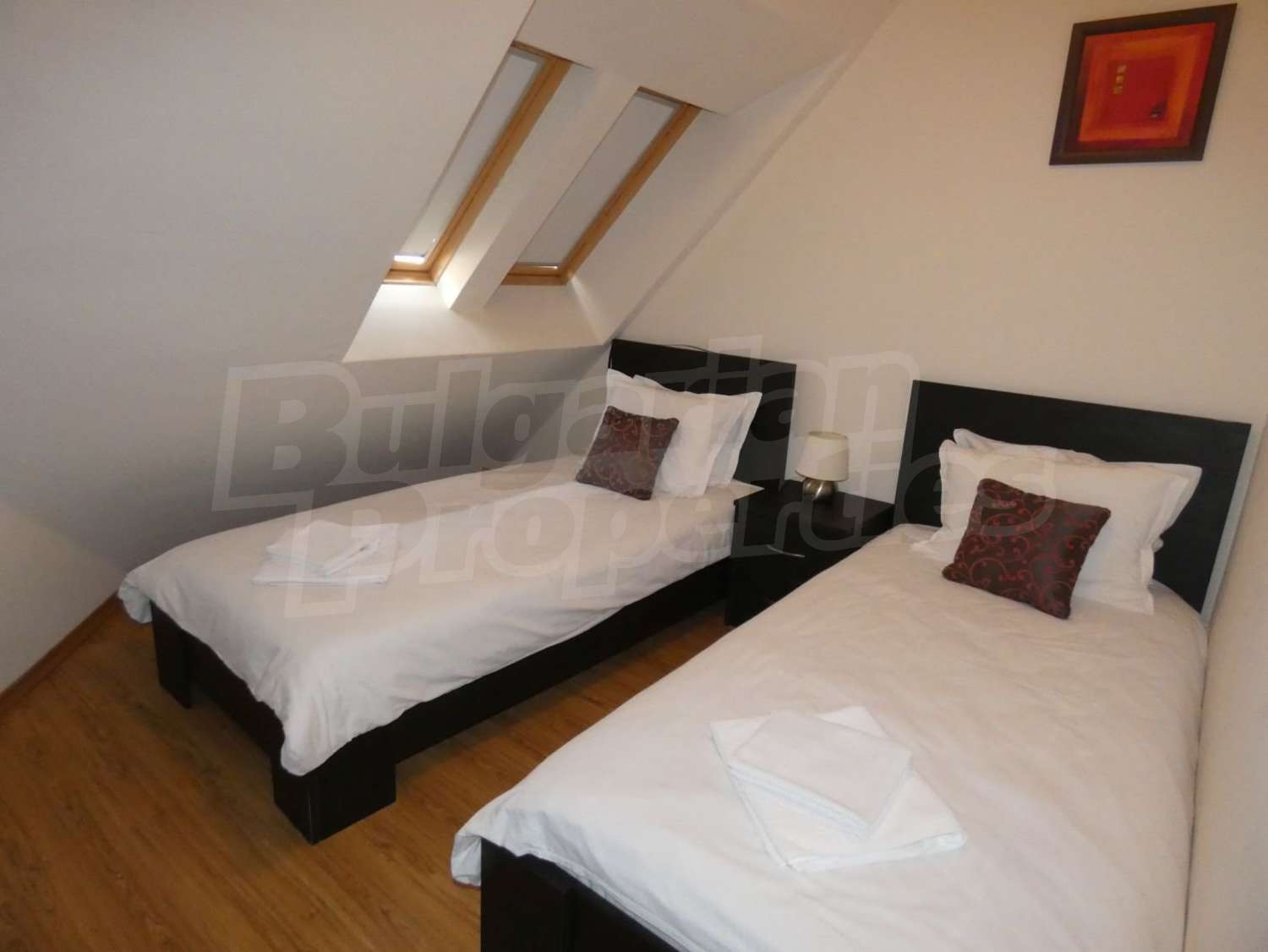 • СПАЛЬНЯ 2: две кровати,2 прикроватные тумбочки с ночными светильниками, шкаф для одежды