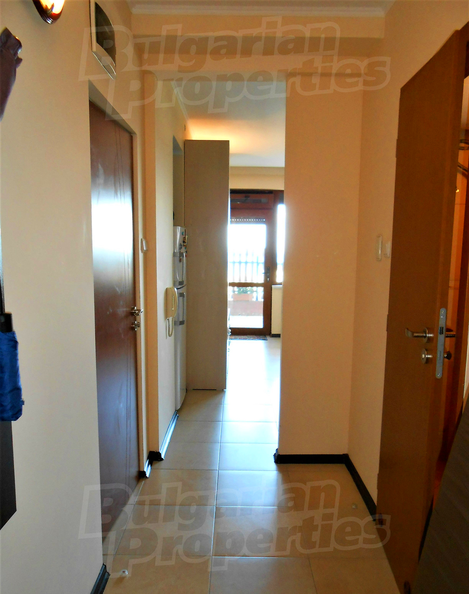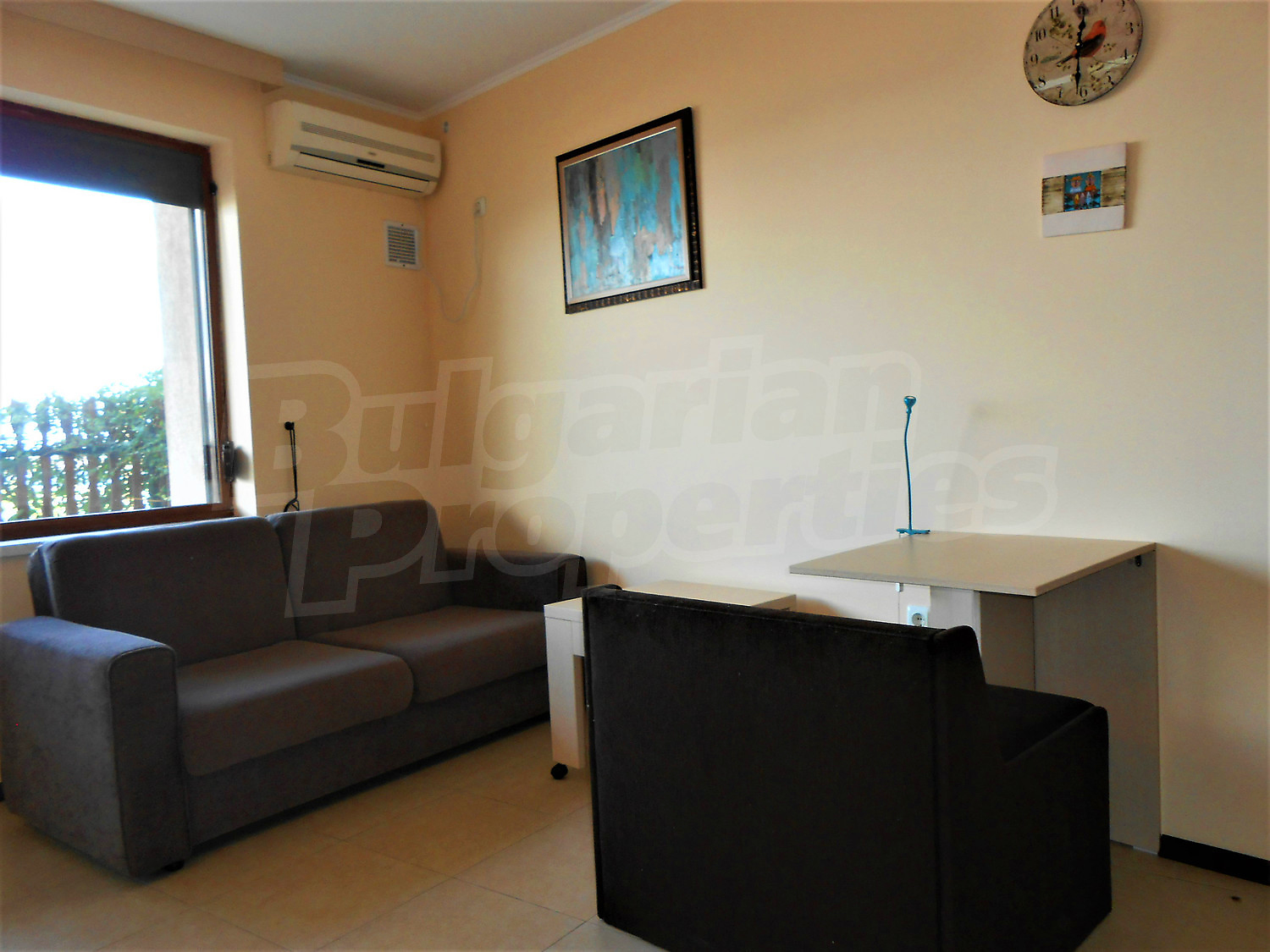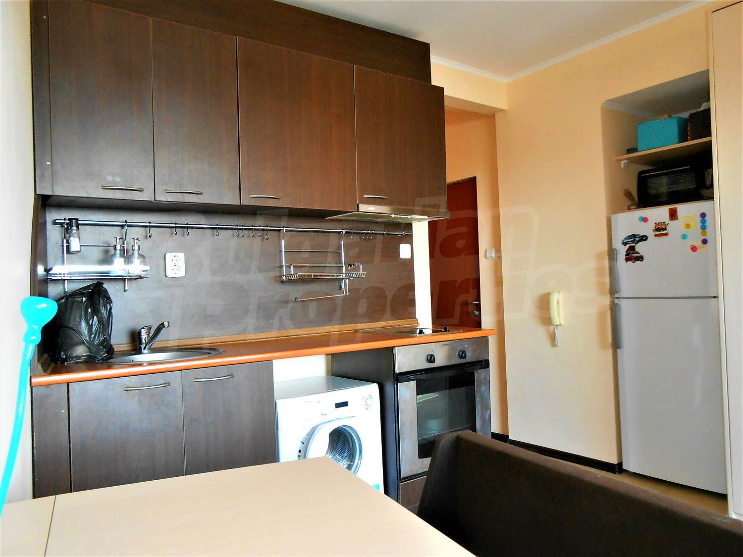 Двухкомнатная квартира площадью 45.78 кв. метров. Предлагаемая недвижимость построена в 2011. Отопление кондиционером. Керамогранитный пол, окна пвх и покрашенные стены имеются в предлагаемой недвижимости. Недвижимость включает следующую меблировку и оборудование: бойлер электрический, вытяжка, духовка, душевая, кондиционер, меблировку, оборудованная ванная комната, стиральная машина и холодильник. Из основных коммуникаций обеспечены электричество, вода и канализация. Ванная комната с туалетом, подвал, терраса, интернет, кабельное телевидение и телефон имеются в наличии среди прочих перечисленных характеристик предлагаемого объекта, что обеспечит дополнительный комфорт для пользования. Виды на горы, виды на море и виды на порт открываются с недвижимости, раскрывая часть красот живописной Болгарии.