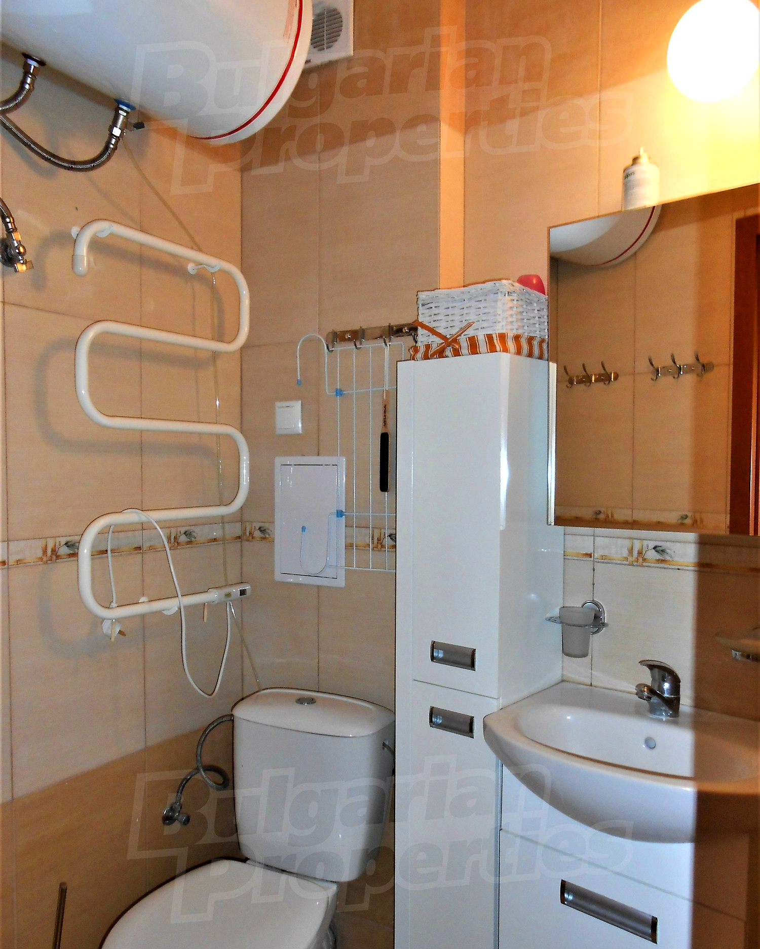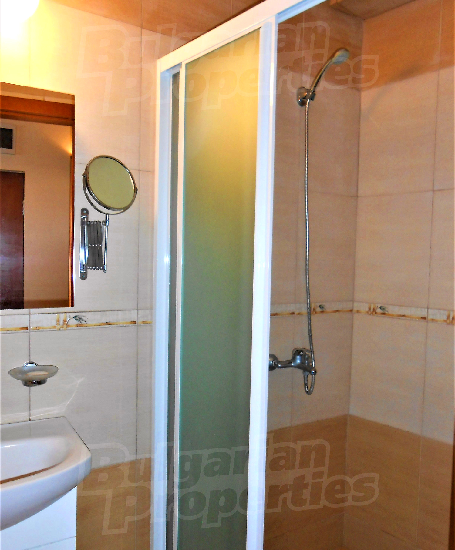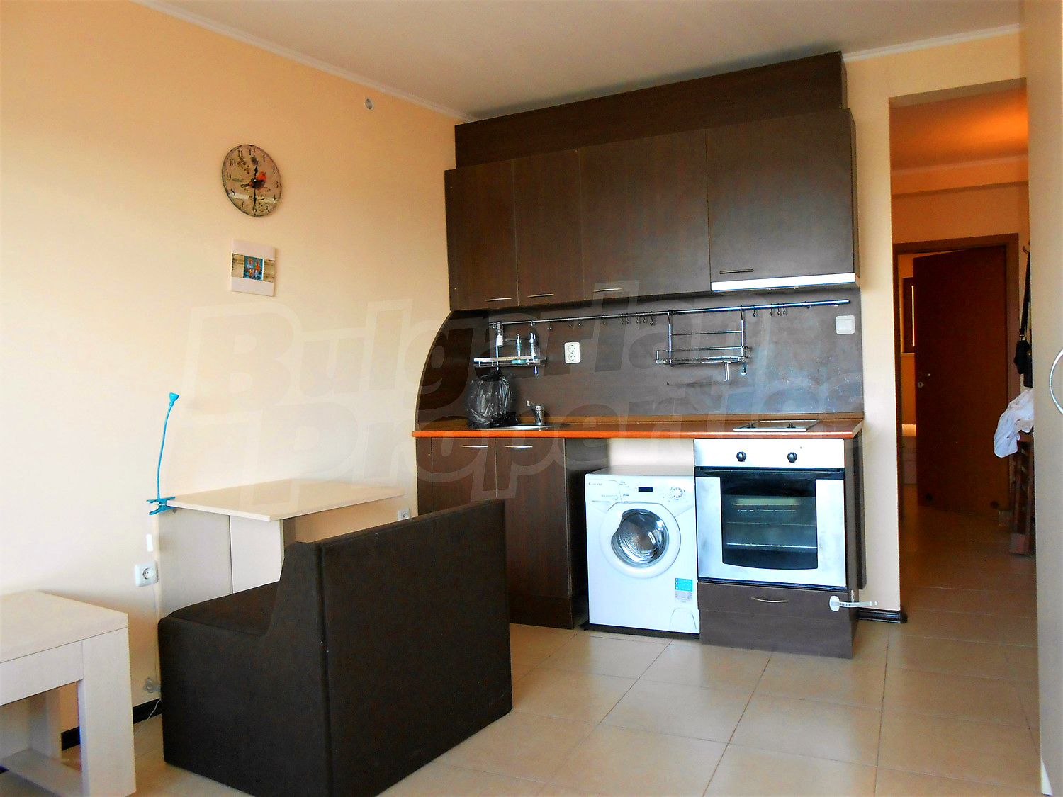 Двухкомнатная квартира площадью 45.78 кв. метров. Предлагаемая недвижимость построена в 2011. Отопление кондиционером. Керамогранитный пол, окна пвх и покрашенные стены имеются в предлагаемой недвижимости. Недвижимость включает следующую меблировку и оборудование: бойлер электрический, вытяжка, духовка, душевая, кондиционер, меблировку, оборудованная ванная комната, стиральная машина и холодильник. Из основных коммуникаций обеспечены электричество, вода и канализация. Ванная комната с туалетом, подвал, терраса, интернет, кабельное телевидение и телефон имеются в наличии среди прочих перечисленных характеристик предлагаемого объекта, что обеспечит дополнительный комфорт для пользования. Виды на горы, виды на море и виды на порт открываются с недвижимости, раскрывая часть красот живописной Болгарии.